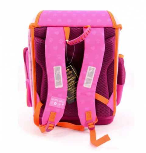 Dimensiuni: Inaltime 41cm x Latime 29.5cm x 16cm baza. Ghiozdan rigid confectionat din material impermeabil. Are 1 compartiment mare prevazut cu separator interior. Buzunarul frontal este incapator si se inchide cu fermoar. Pe laterale are 1 buzunar tip plasa si 1 buzunar inchis cu fermoar. Baza este rigida, din plastic. Spatele este ergonomic, buretat, permite circularea aerului si protejeaza spatele. Bretelele sunt ferme, buretate, protejeaza umerii.