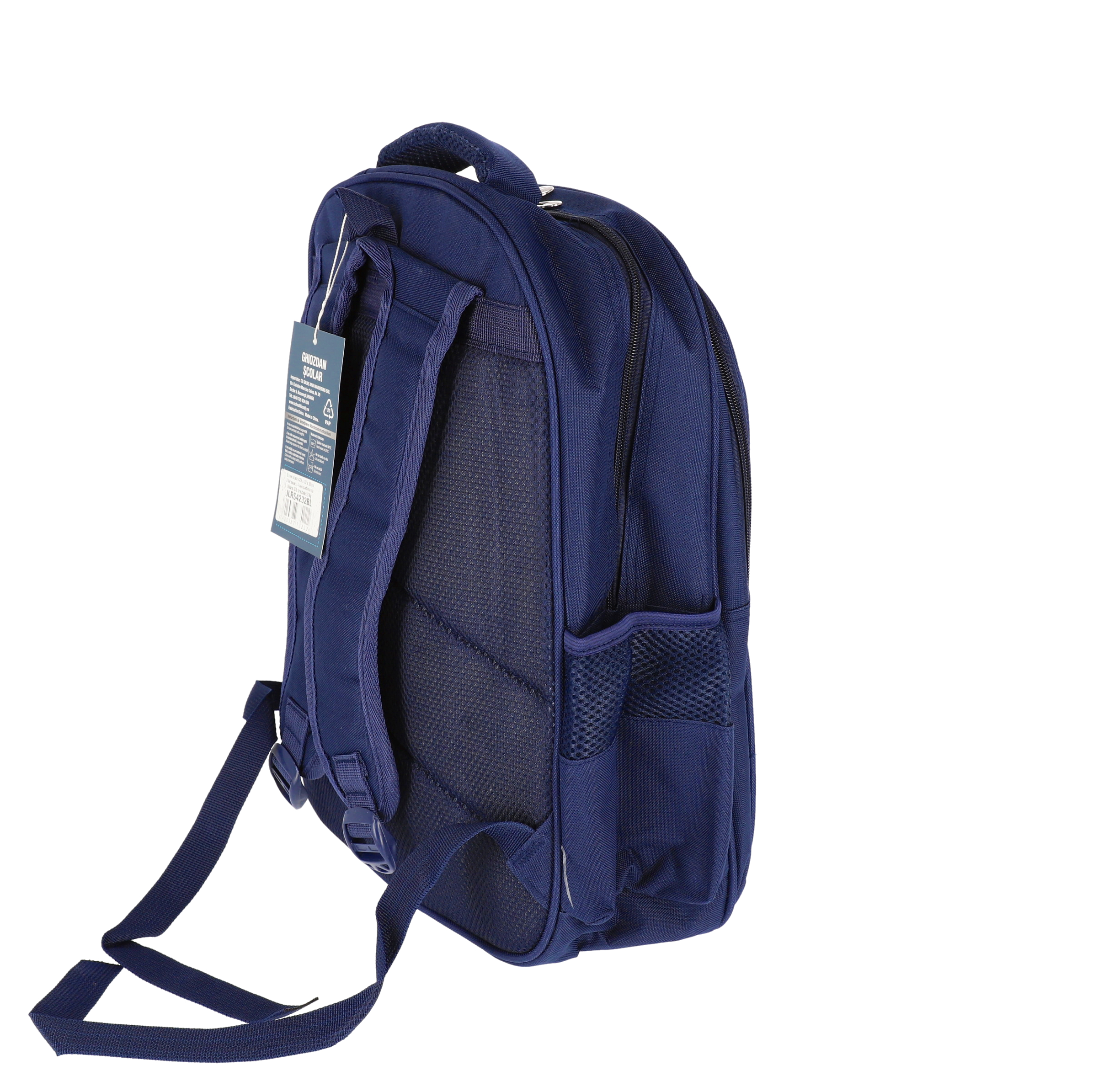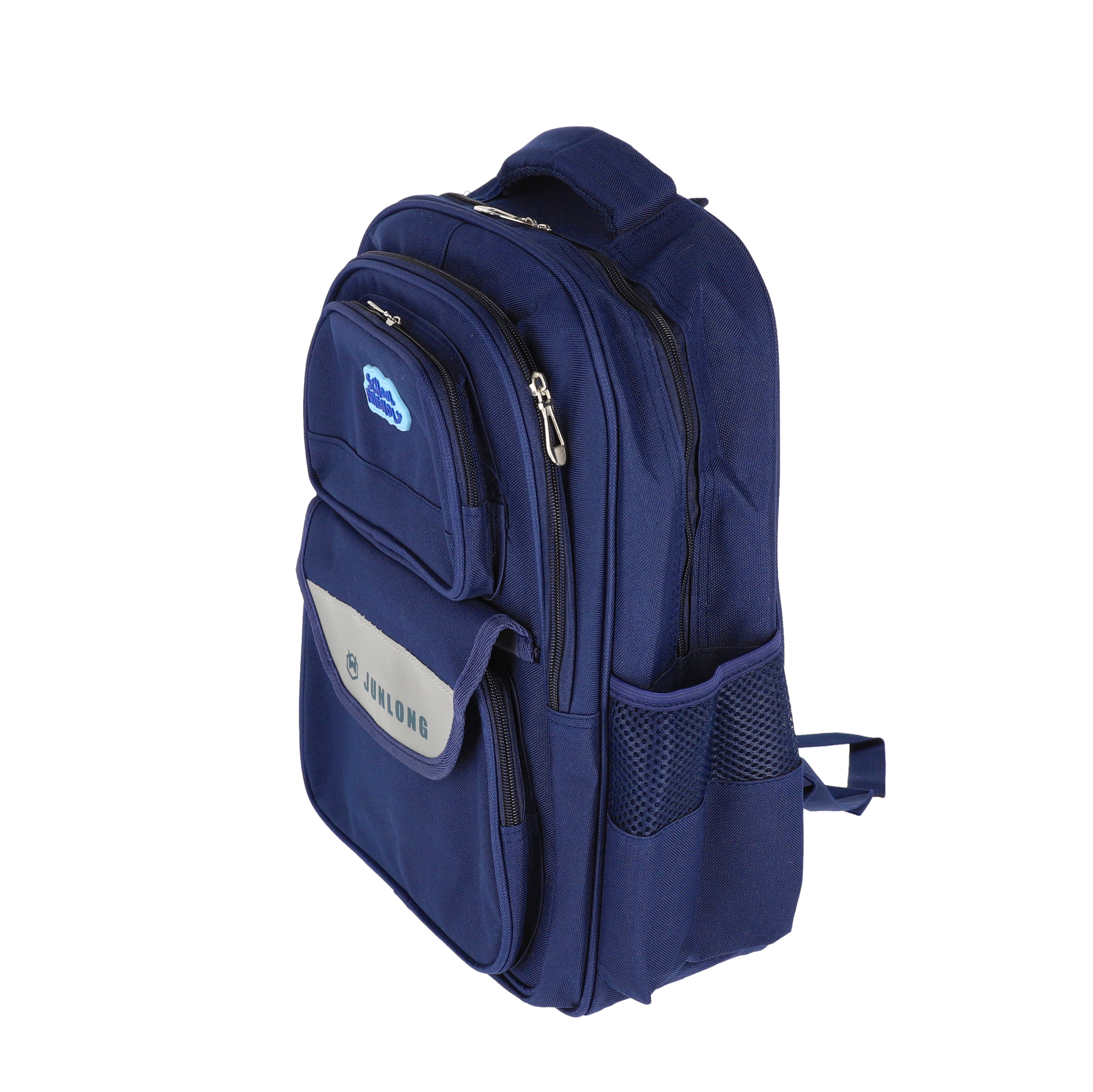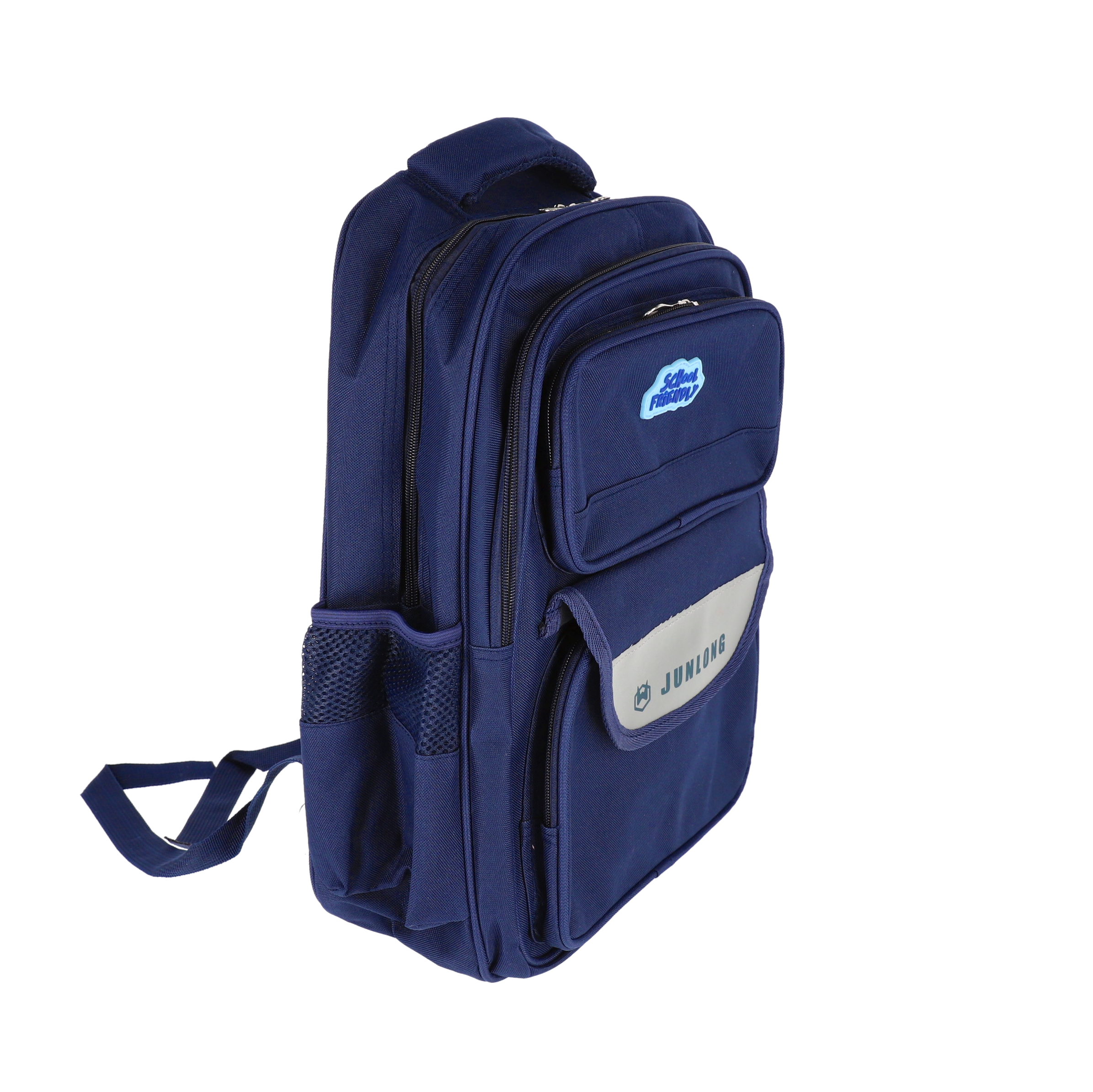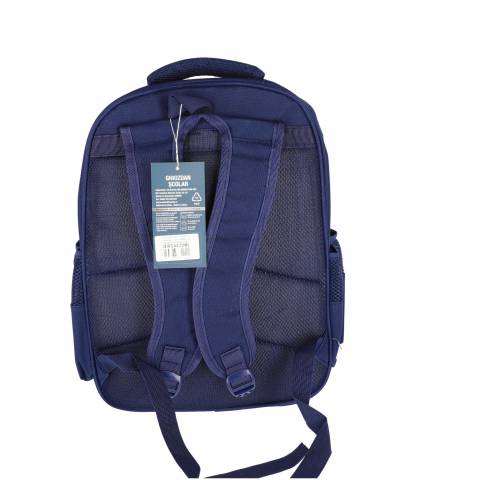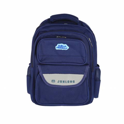 Ghiozdan școlar SchoolFriendly albastru cu 3 compartimente cu fermoar, dimensiuni 42x32x20cm, ideal pentru organizarea eficientă a rechizitelor. Rucsac rezistent din material textil de calitate, cu bretele moi căptușite, buzunare laterale și design ergonomic pentru confortul elevilor.