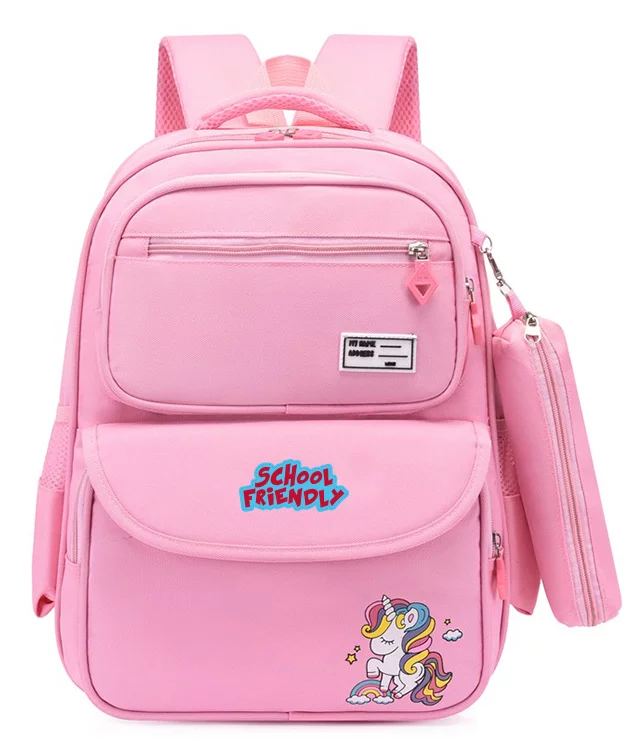 Design Prietenos: Ghiozdanul impresionează prin designul său roz plin de culoare, captând atenția și aducând un zâmbet pe fețele celor mici.