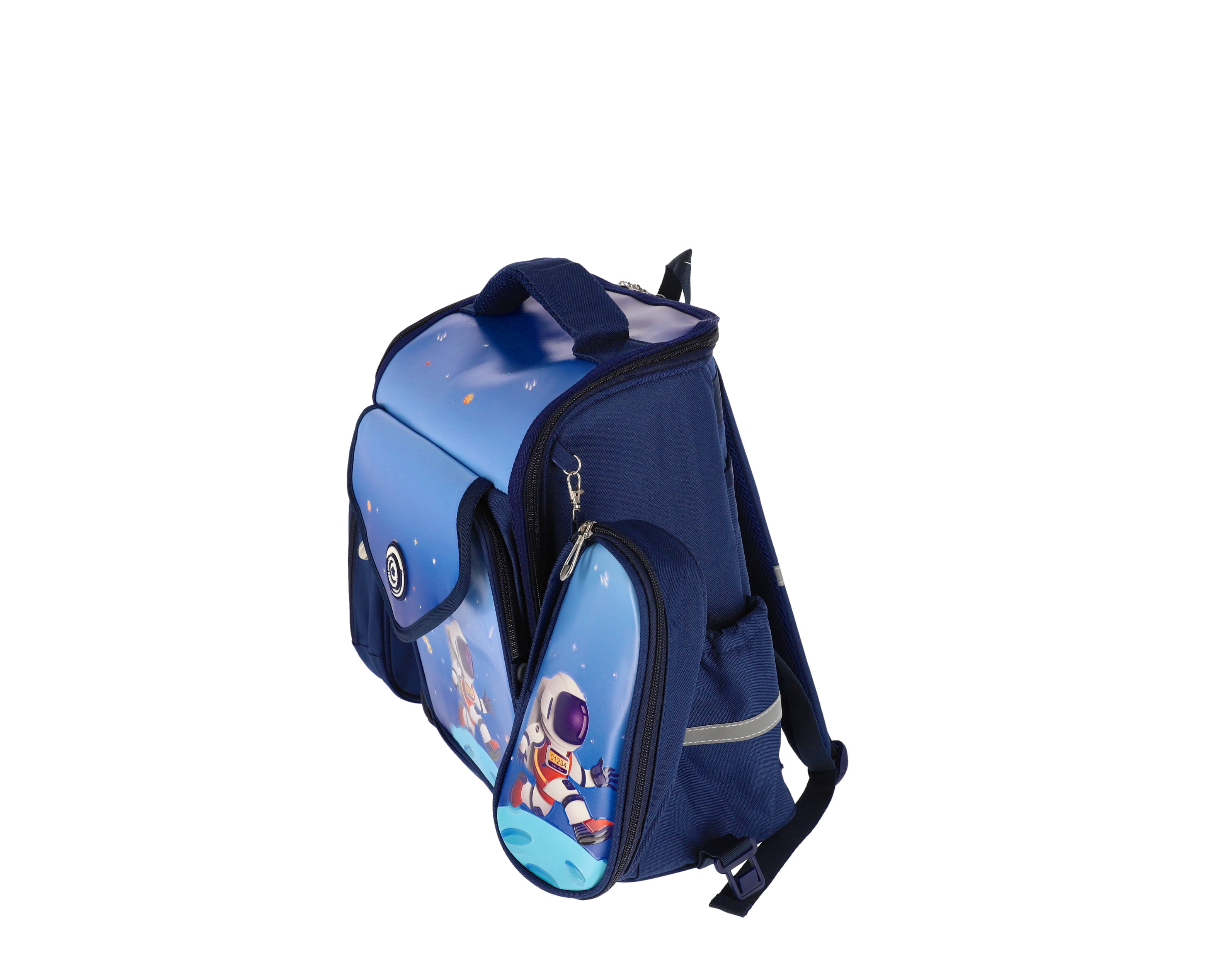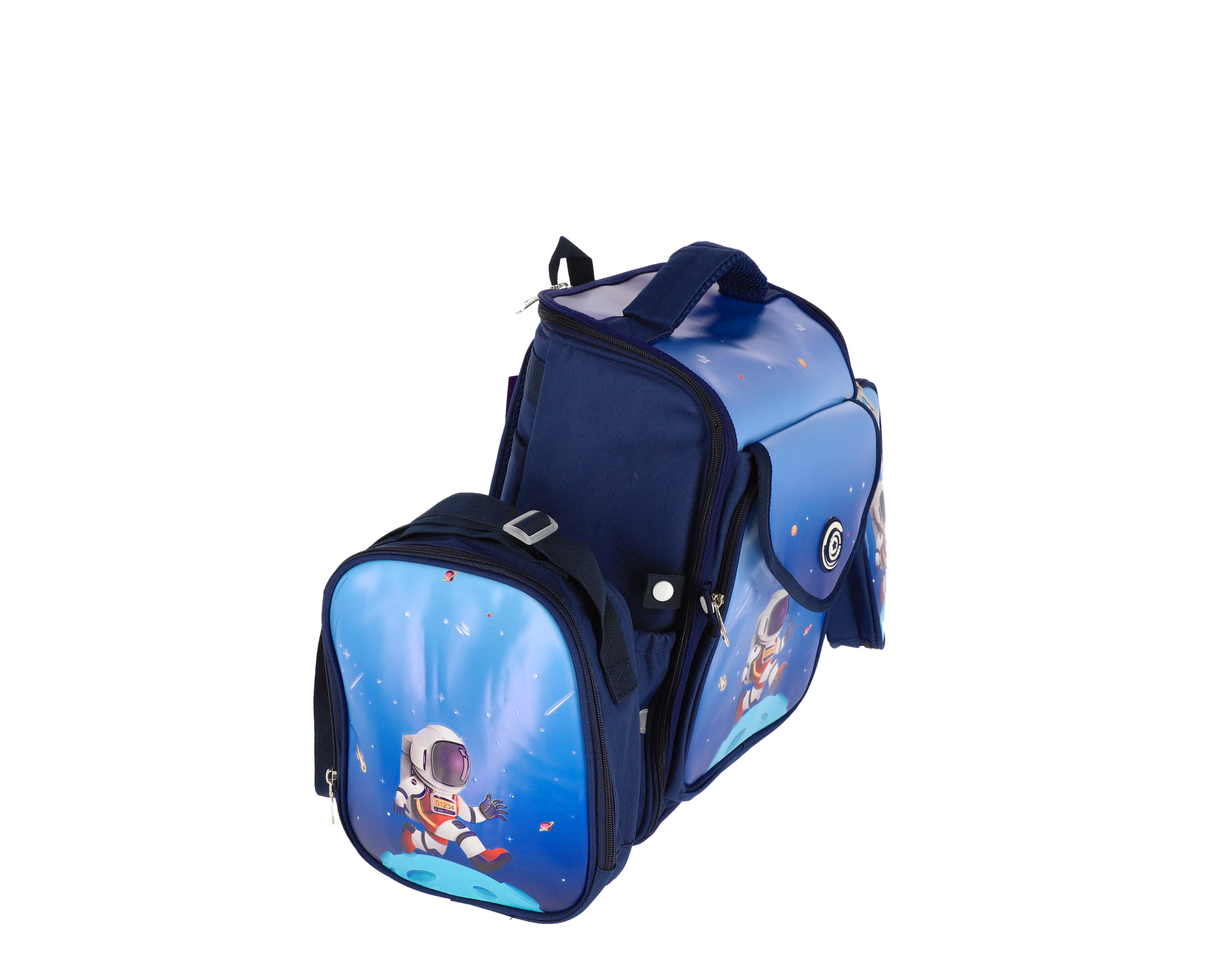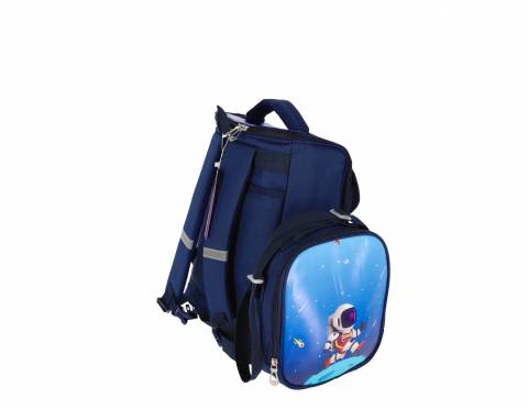 Ghiozdan Scolar, Schoolfriendly Astronaut, 2 Fermoare, 36x30x20cm, Albastru, Penar si LunchBox