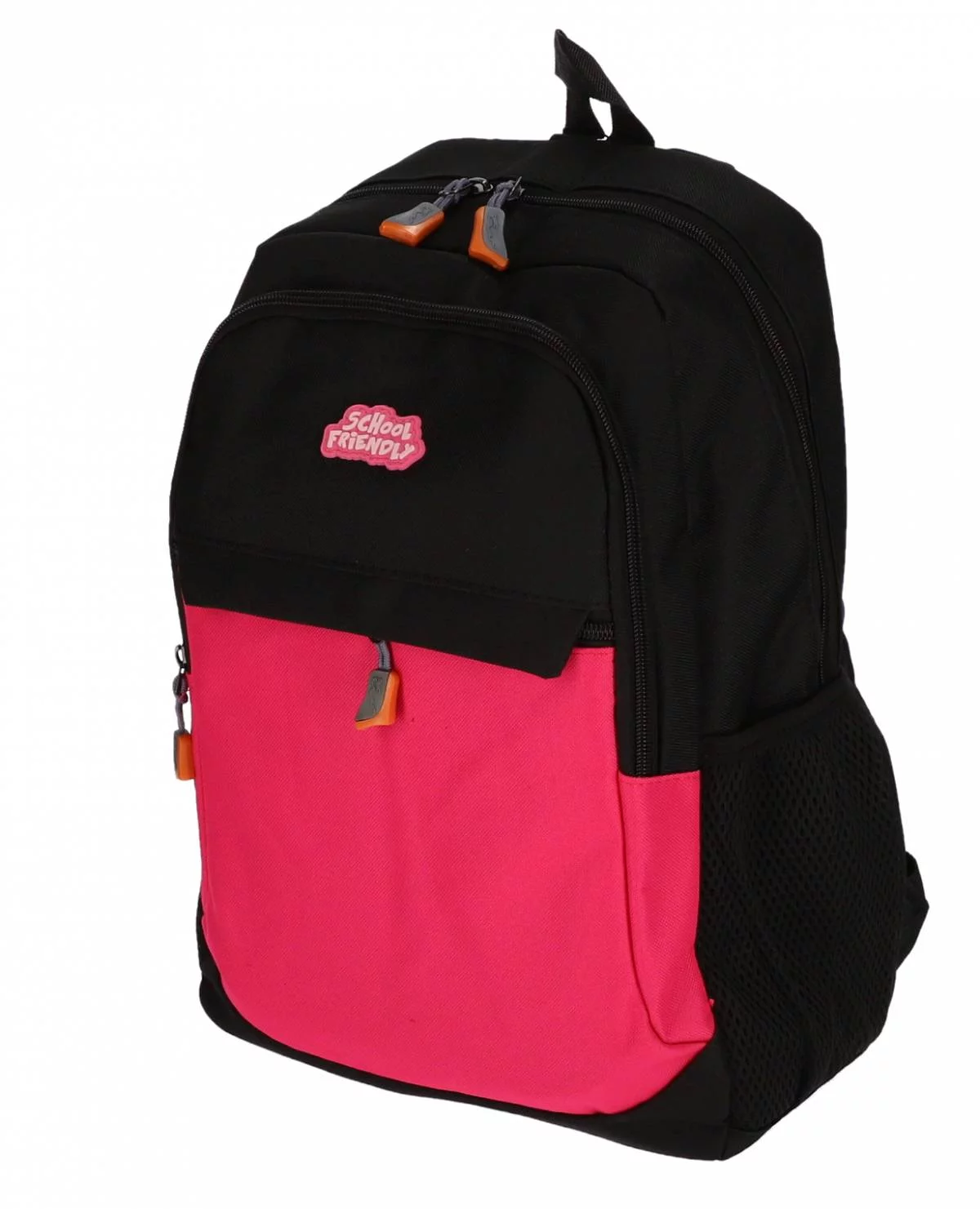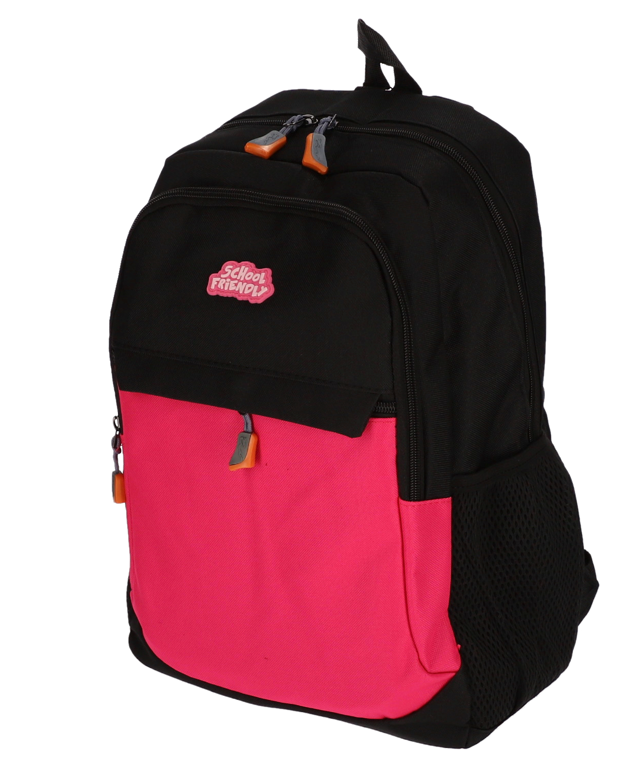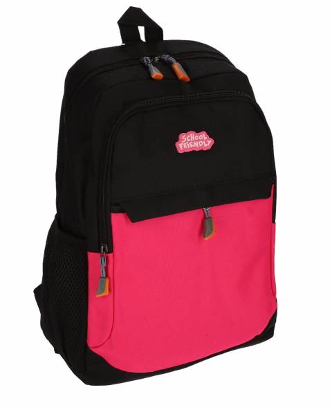 Ghiozdan timp lber 2 fermoare. Separator la interior. Spate buretat. Bretele buretate si ajustabile. Agatatoare. Buzunare laterale. Material poliester cu aspect satinat, impermeabil si rezistent la zgarieturi. Dimensiuni: 45cm inaltime x 23cm latime x 13cm adancime. Greutate ghiozdan: 0.27 kg. Culoare roz.