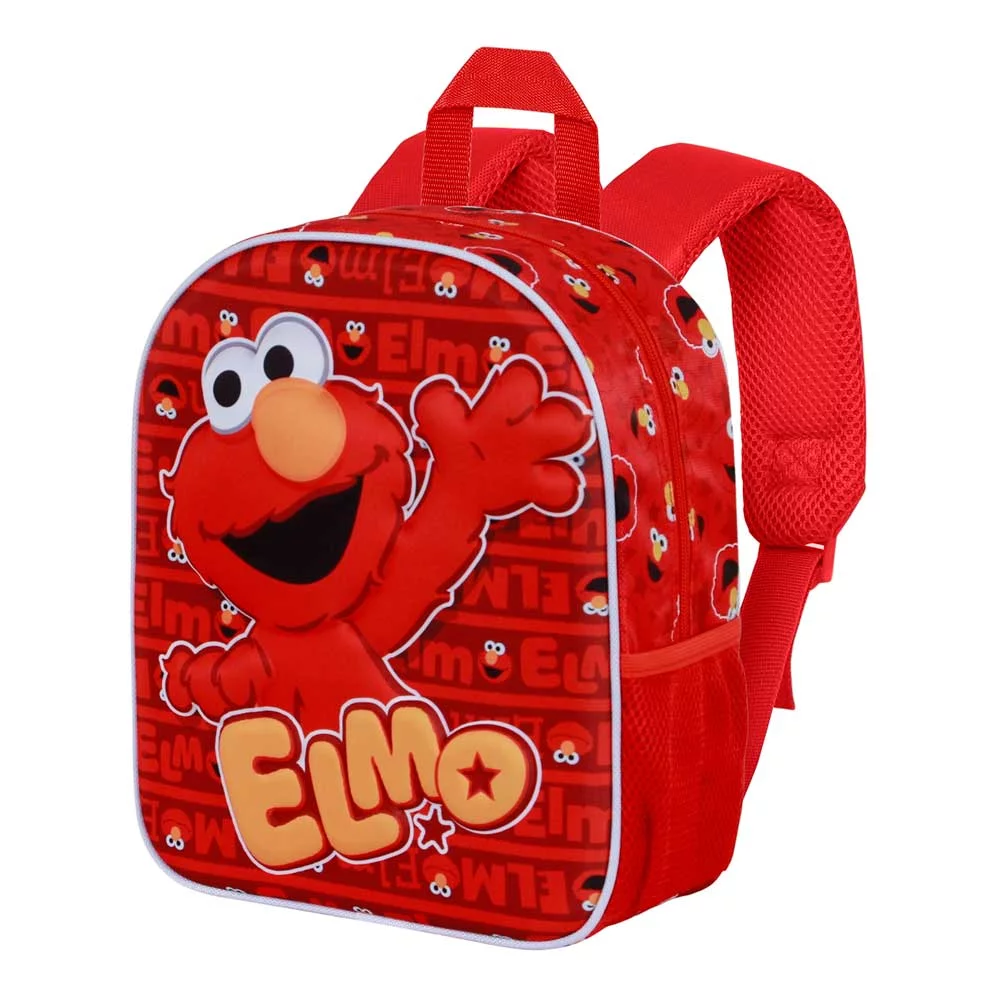 Ghiozdan Sesame Street Elmo roșu cu design 3D pentru copii, dimensiuni 10x25x30cm, perfect pentru grădiniță și școală. Bretele ajustabile confortabile, compartiment spațios și imprimeu vesel cu personajul Elmo. Material rezistent, ideal pentru cei mici.