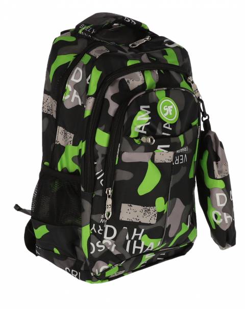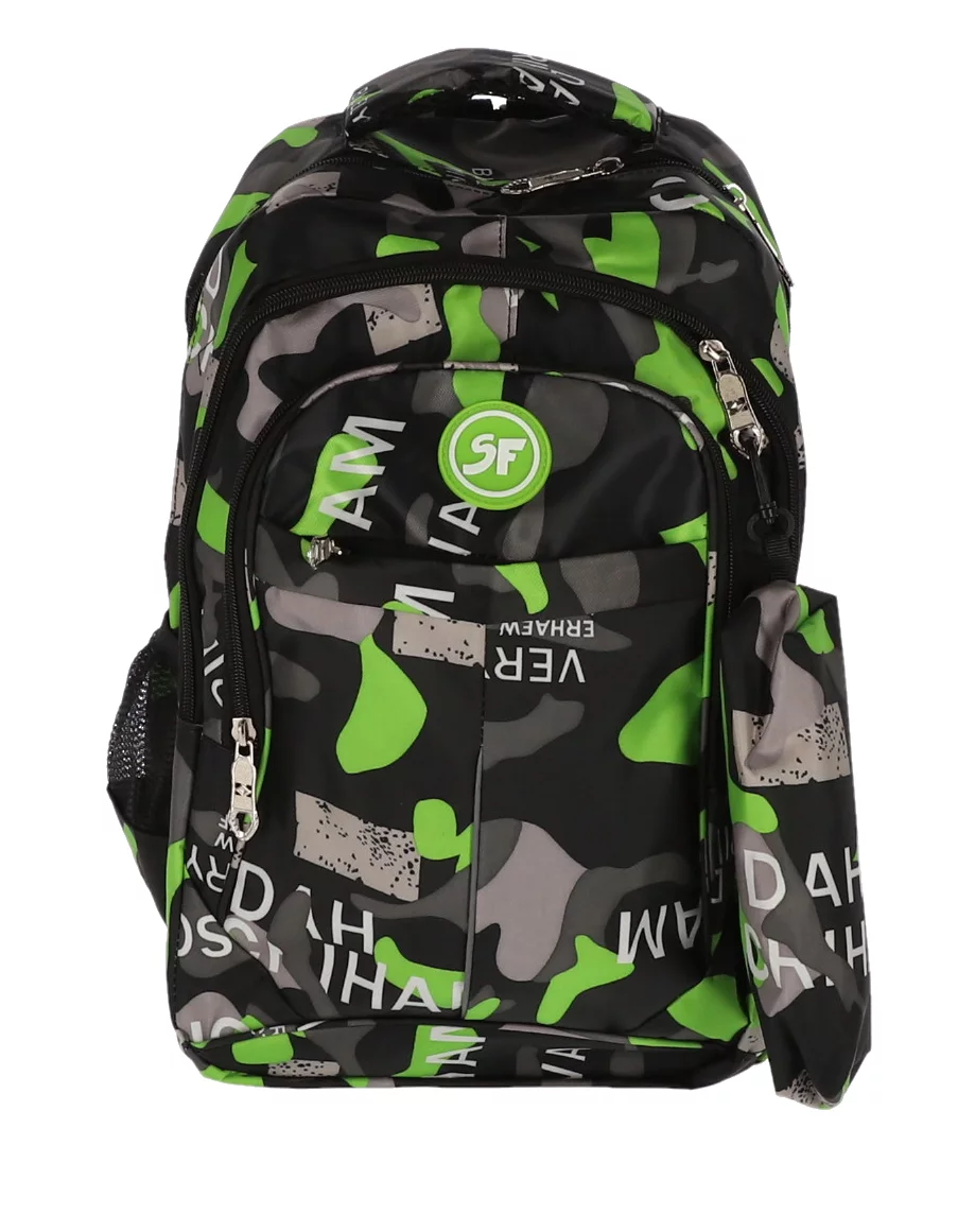 Ghiozdan SF, 4Fermoare 42cm cu penar etui CAMUFLAJ VERDE