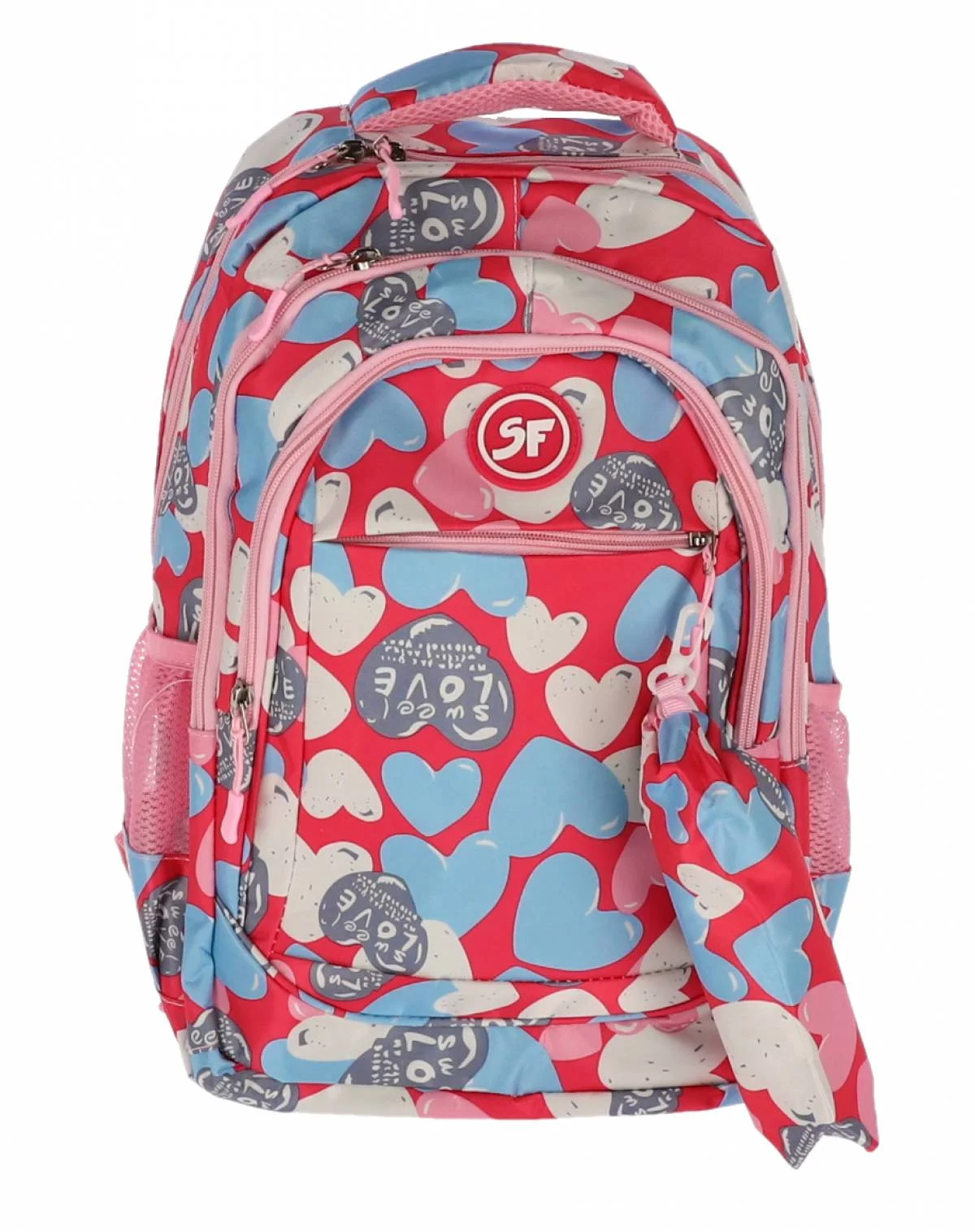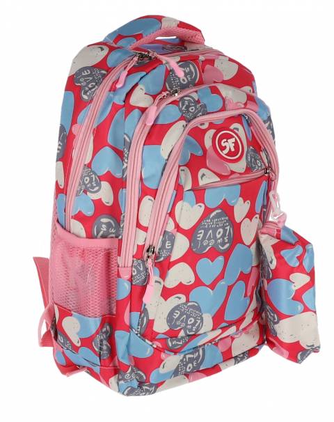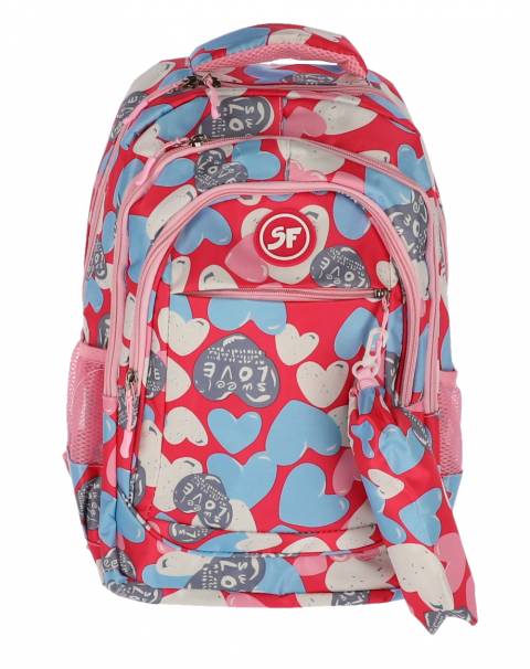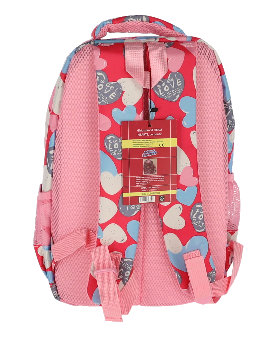 Ghiozdan SF, 4Fermoare 42cm cu penar etui ROSU Inimi