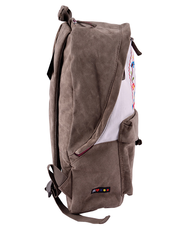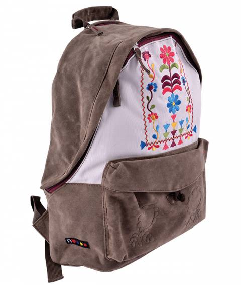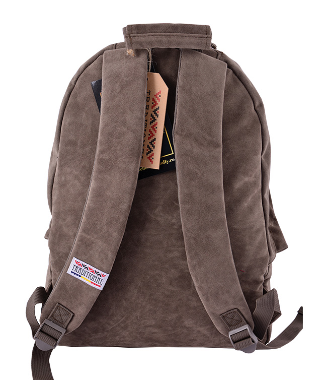 Dimensiuni: Inaltime 42cm x Latime 30cm x 14cm baza. Ghiozdan confectionat din material textil de calitate piele ecologica, cu elemente traditionale brodate, cu spate si bretele buretate. Este captusit pe interior. Are 1 compartiment incapator, inchis cu fermoar si 1 buzunar frontal inchis cu nod + un buzunar mic pentru chei. Baza, spatele și bretelele sunt buretate. Are cusături duble la mâner și la bretele. Bretelele sunt ajustabile.