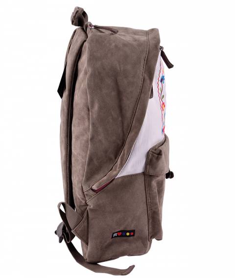 Ghiozdan Traditional CANVAS (cu piele ecologica maro-bej-multicolor)