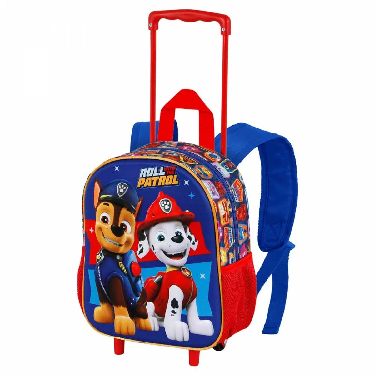 Ghiozdan Troller pentru preșcolari, cu design atractiv Paw Patrol Friendship 3D, ideal pentru micii fani ai celebrului desen animat. Este dotat cu: 1 compartiment principal spațios, perfect pentru depozitarea cărților, jucăriilor sau altor articole esențiale. 2 buzunare laterale practice, pentru acces rapid la sticle de apă sau alte accesorii. Troller integrat, ușor de manevrat, pentru un plus de confort și mobilitate. Fabricat din materiale rezistente, are un design modern, în nuanțe de albastru vibrant, dimensiuni compacte de 26cm x 34cm x 13cm și este perfect adaptat pentru nevoile preșcolarilor.