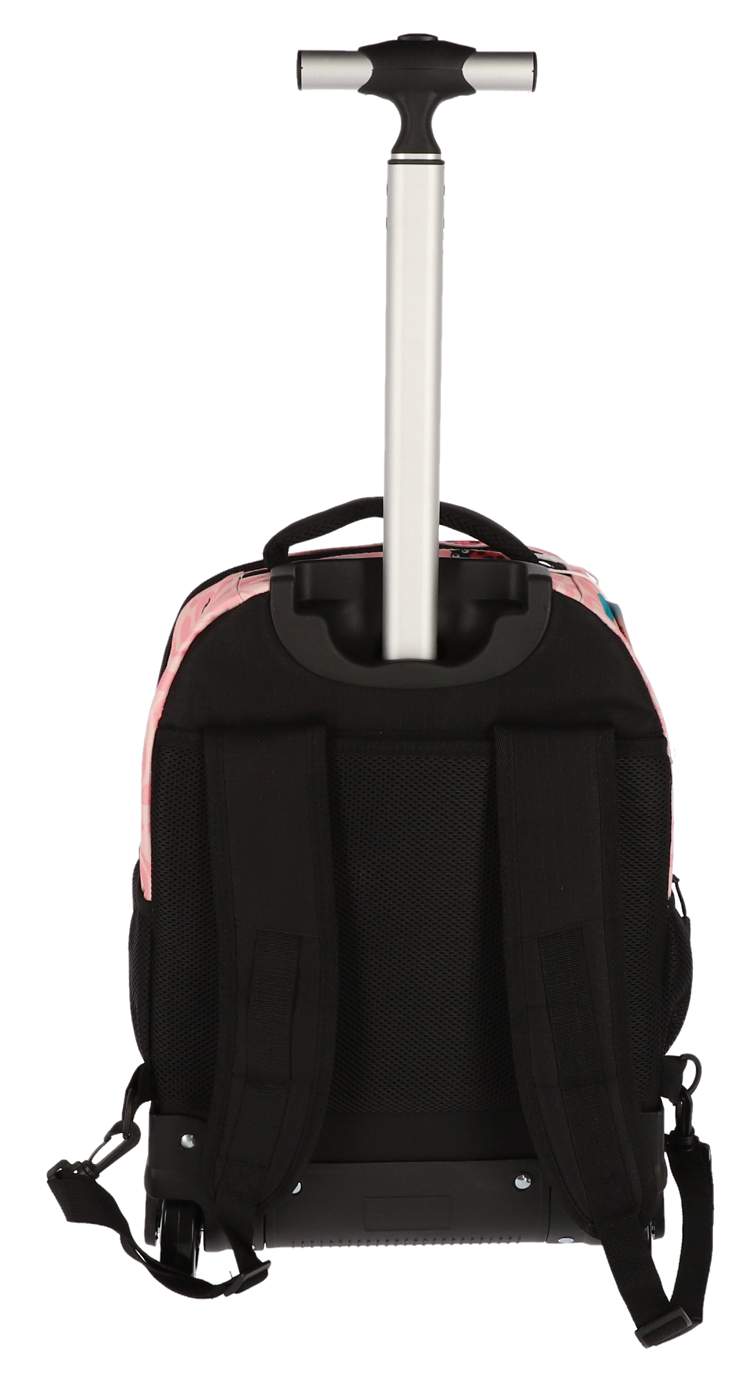 Interiorul este căptușit și include un buzunar capitonat special pentru protecția dispozitivelor electronice. Bretelele ajustabile și capitonate permit utilizarea ghiozdanului și ca rucsac, iar cele două roți integrate fac transportul ușor și confortabil.