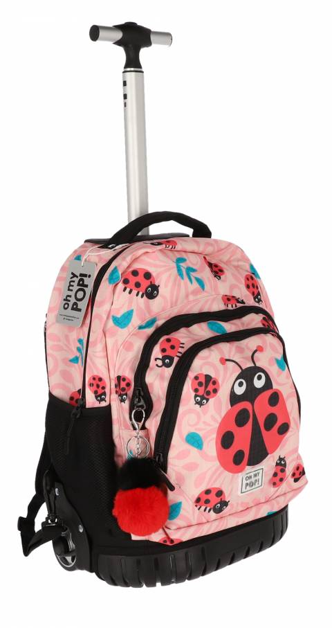 Ghiozdanul troller scolar Oh My Pop! Ladybug este alegerea ideală pentru elevii care își doresc un design modern și funcționalitate maximă. Cu două compartimente spațioase, un buzunar frontal practic și două buzunare laterale din plasă, oferă suficient spațiu pentru organizarea eficientă a tuturor lucrurilor necesare.