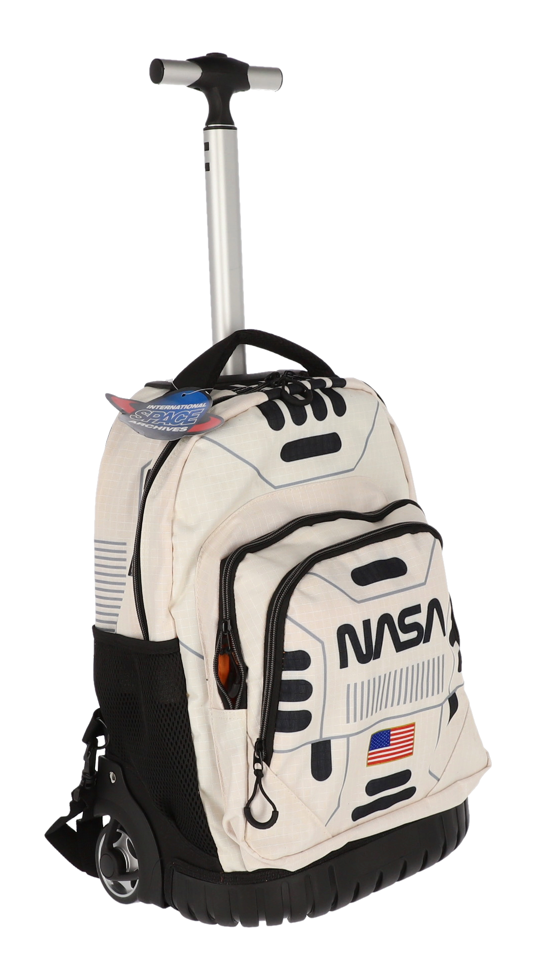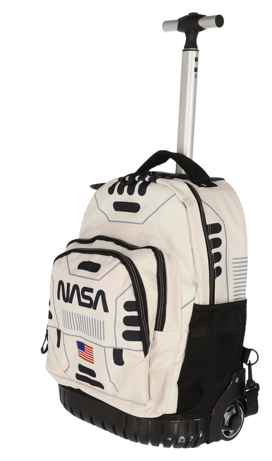 Ghiozdanul troller scolar NASA Spaceship este ideal pentru micii exploratori pasionați de spațiu. Cu un design inspirat de NASA, acest ghiozdan combină funcționalitatea cu un aspect modern și atractiv. Dispune de două compartimente principale spațioase, un buzunar frontal practic și două buzunare laterale din plasă, perfecte pentru sticle sau alte accesorii.
