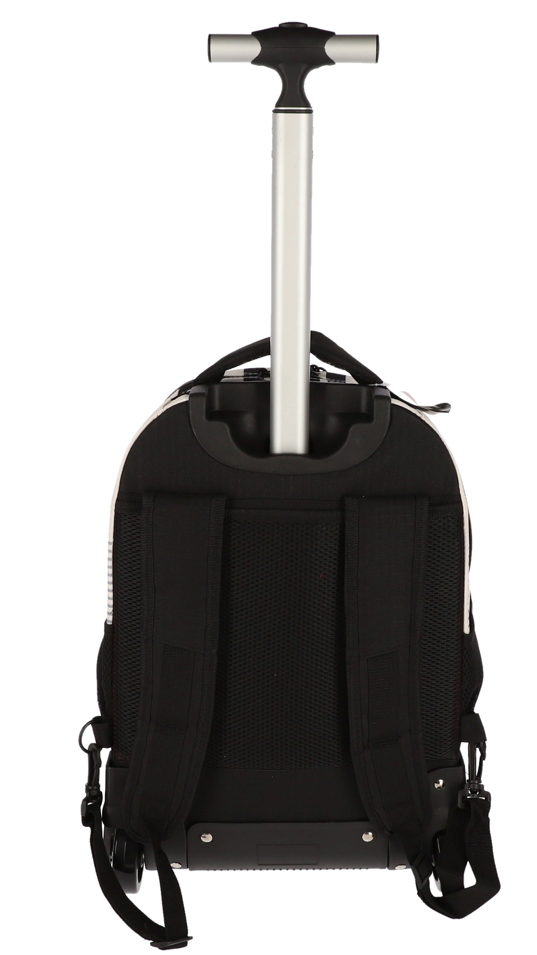 Interiorul căptușit include un buzunar capitonat pentru dispozitive electronice, iar bretelele ajustabile și capitonate permit utilizarea ghiozdanului ca rucsac. Trolley-ul integrat cu două roți asigură un transport ușor și confortabil.