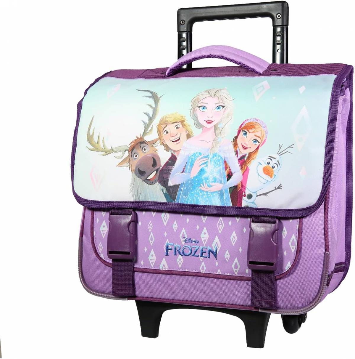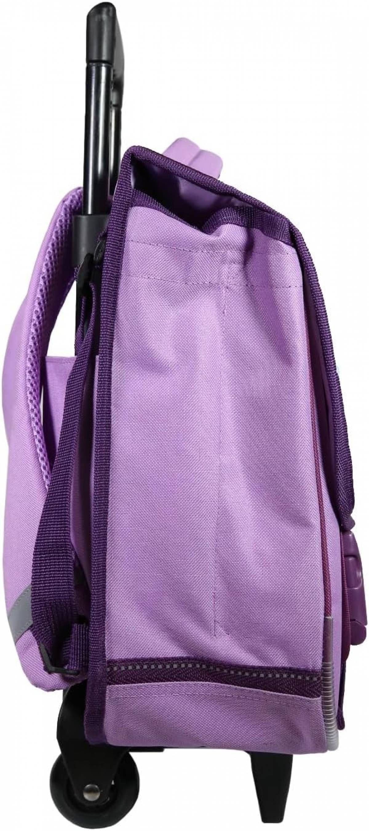 Acest ghiozdan troller cu design inspirat din celebrul film Frozen este perfect pentru fanii animației Disney. Ghiozdanul vine într-o culoare plăcută de violet și este decorat cu personajele îndrăgite din film, inclusiv Elsa, Anna, Olaf, Kristoff și Sven.