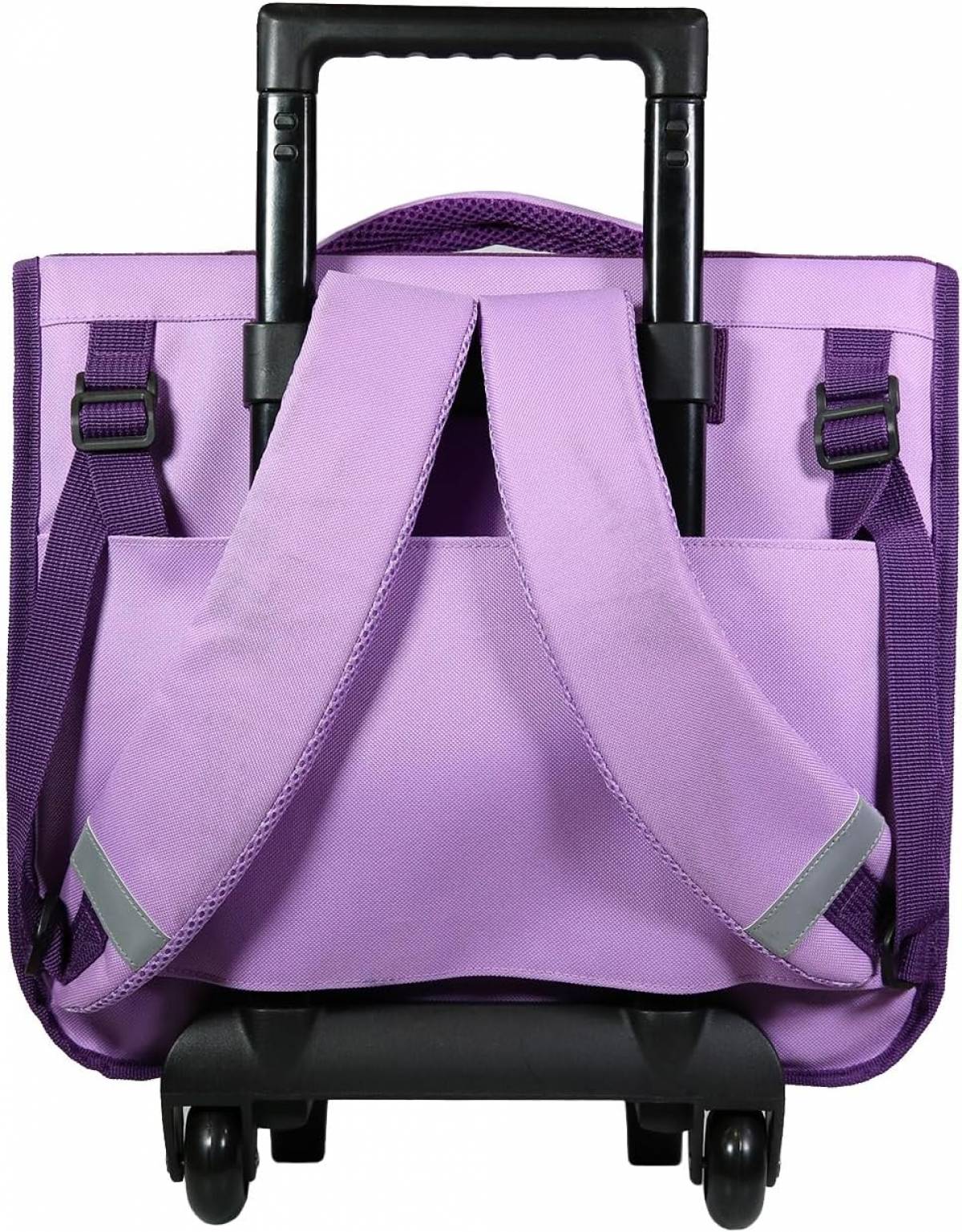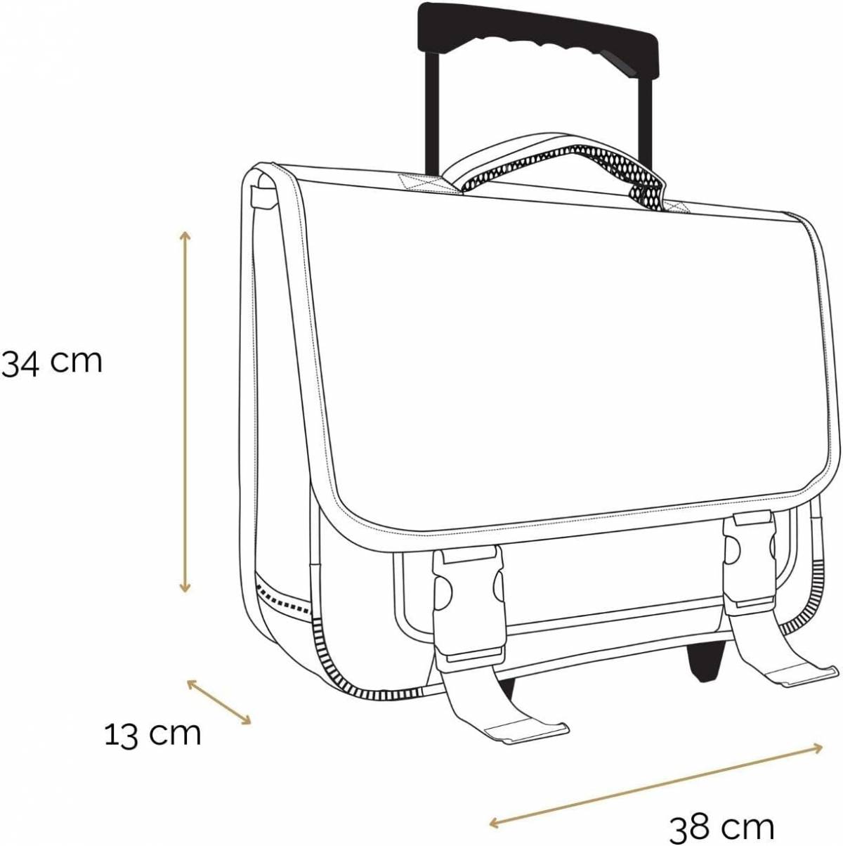 - Trollerul este prevăzut cu roți și mâner telescopic, facilitând transportul ghiozdanului.