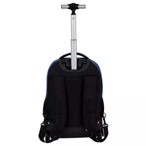 Interiorul căptușit include un buzunar capitonat pentru protecția dispozitivelor electronice. Poate fi purtat ca troller cu roți integrate sau ca rucsac, datorită bretelelor ajustabile și căptușite.