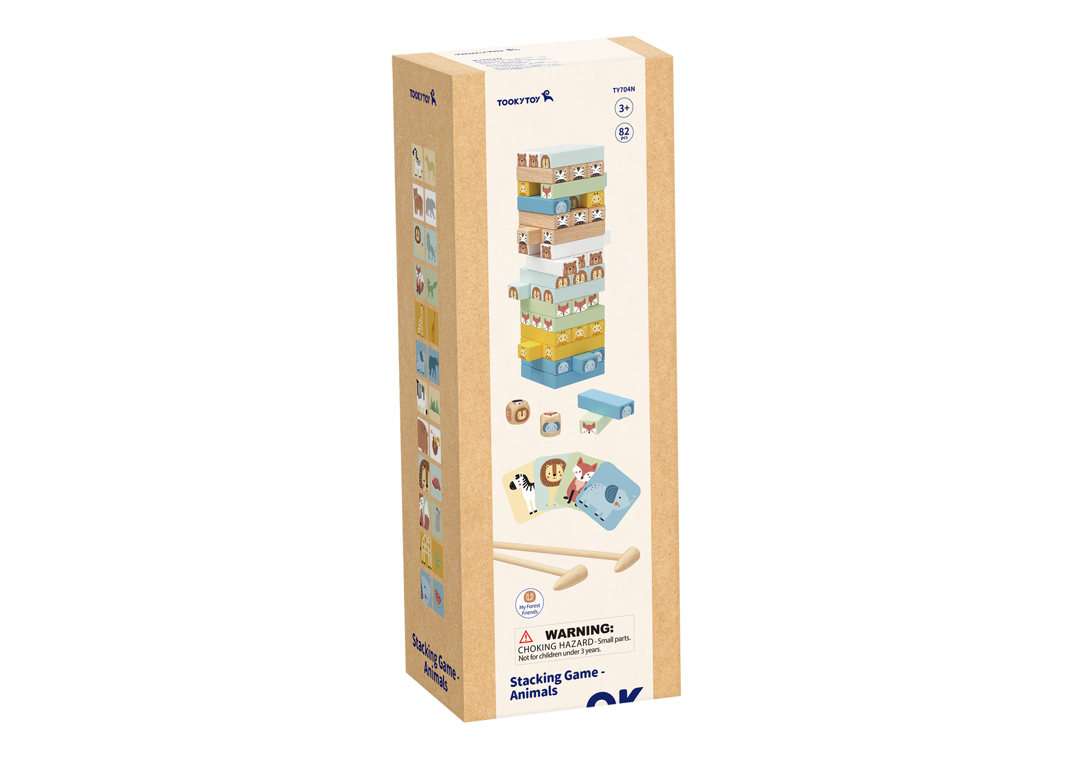 Jenga – Animals este un joc clasic de echilibru reinterpretat pentru copii, realizat din lemn natural si decorat cu animale simpatice, colorate. Scopul jocului este construirea si mentinerea turnului de lemn, indepartand sau adaugand piese fara a-l darama.