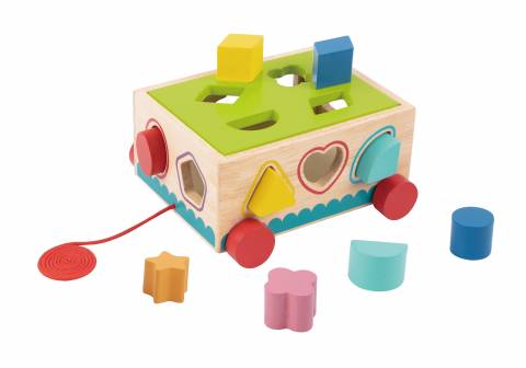Acest Shape Sorter Cart din lemn este o jucarie educativa ideala pentru copiii mici, conceputa pentru a dezvolta recunoasterea formelor, coordonarea si gandirea logica prin joaca. Setul include un cub din lemn cu decupaje si piese colorate de diferite forme geometrice, precum si un snur pentru tragere, incurajand miscarea si explorarea.