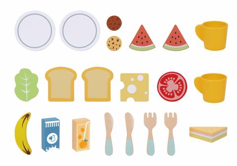 Picnic Basket este un set de joaca educativ care invita copiii sa intre in lumea jocurilor de rol, recreand momente vesele de picnic. Setul include un cosulet tip picnic, patura textila si diverse alimente si accesorii din lemn, special concepute pentru manutele celor mici.