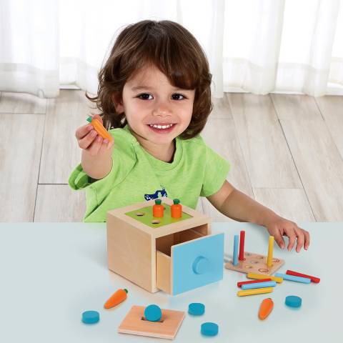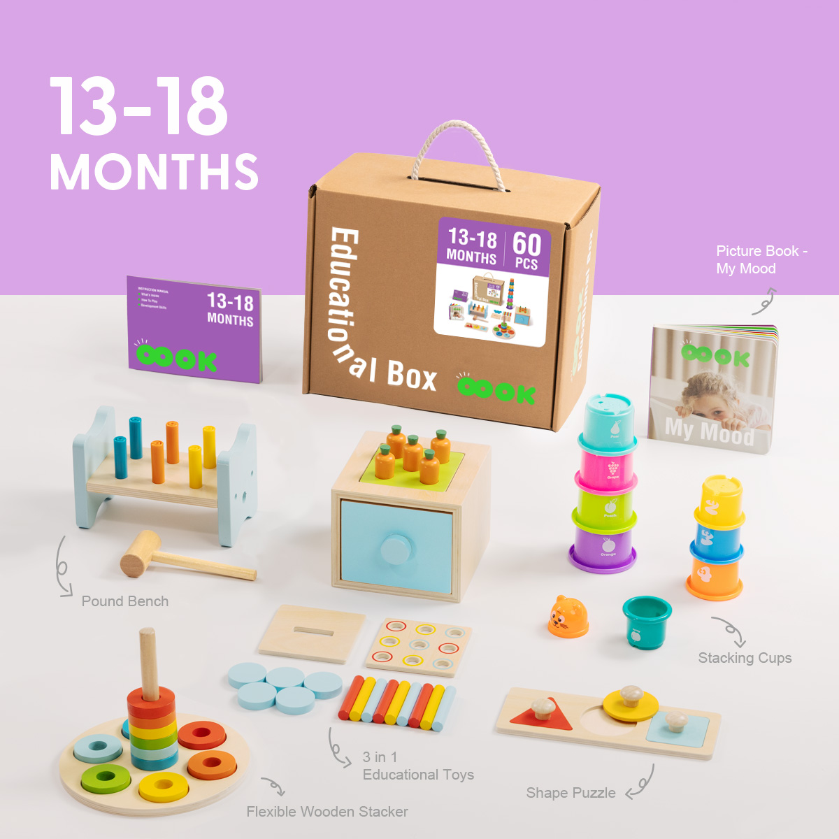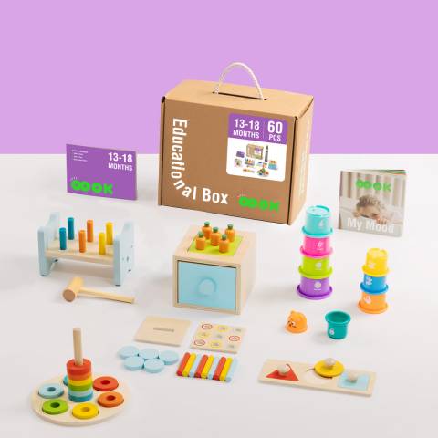 Educational Box 13–18 Luni este un set complet de jucarii educative Montessori, special conceput pentru a sustine dezvoltarea copiilor in primele etape de crestere. Cutia include multiple activitati interactive care stimuleaza coordonarea, motricitatea fina, gandirea logica si curiozitatea naturala a copilului.