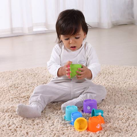 13–14 luni: copilul exploreaza prin atingere, lovire, potrivire si stivuire