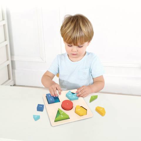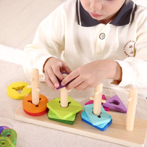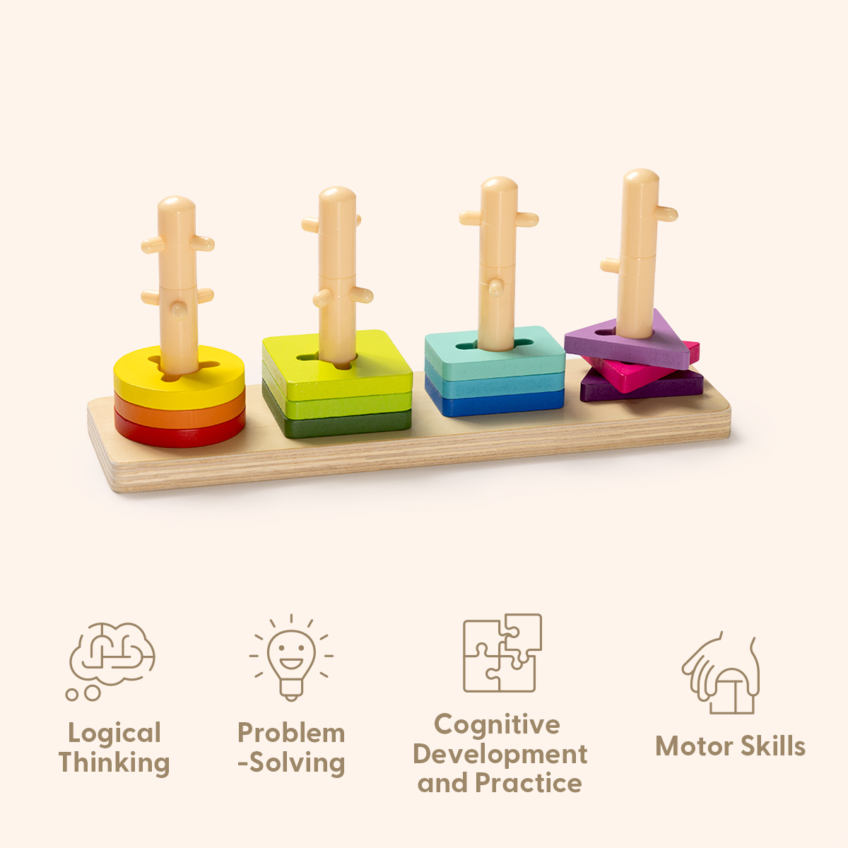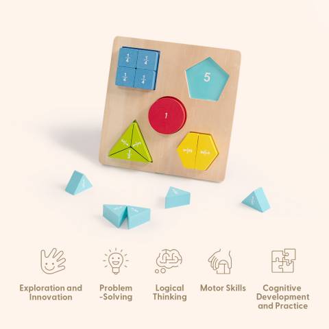 Setul incurajeaza gandirea logica, recunoasterea formelor si culorilor, precum si dezvoltarea abilitatilor de rezolvare a problemelor. Toate piesele sunt realizate din lemn natural, cu margini rotunjite si vopsele non-toxice, fiind sigure si durabile.