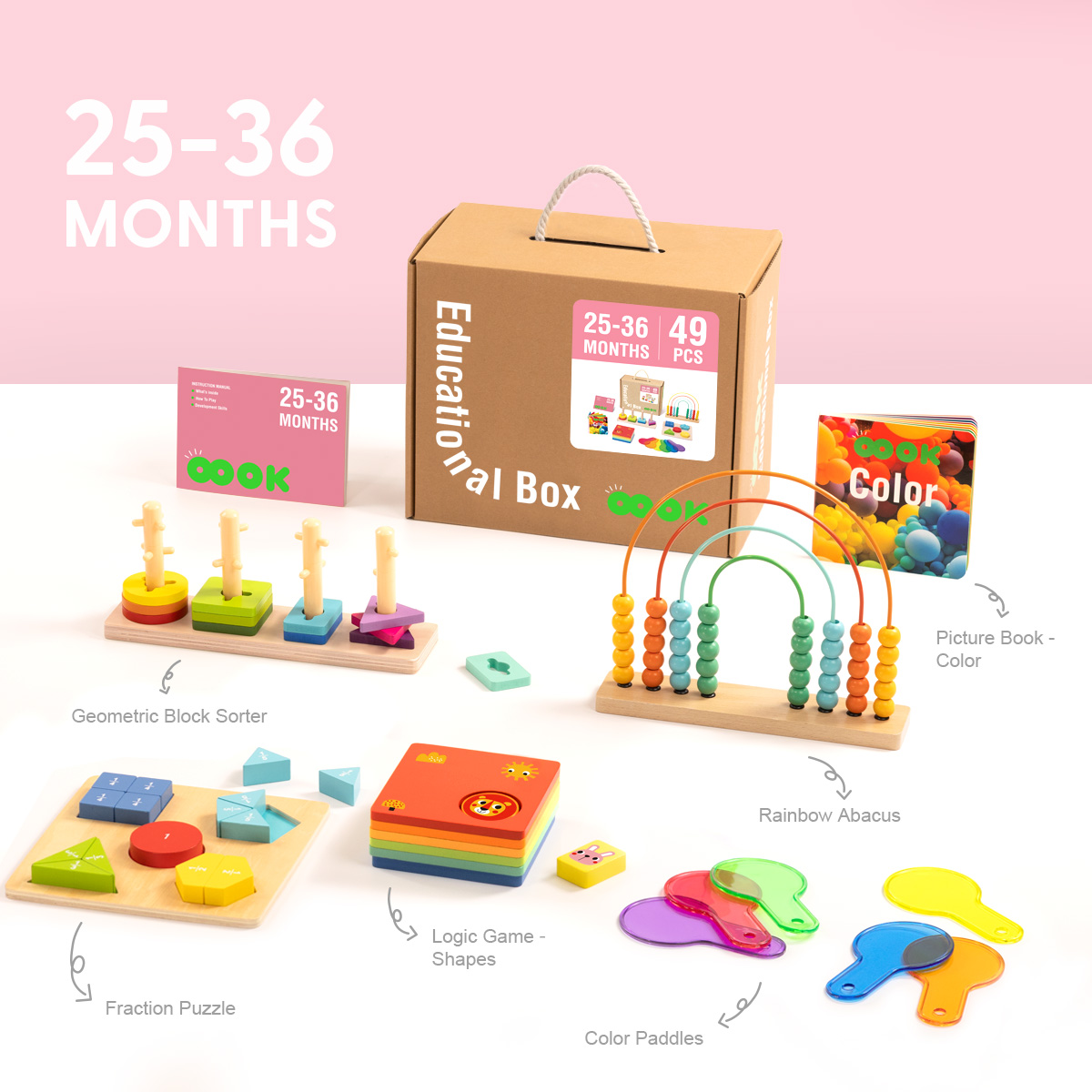 Joc Montessori Educational Box 25-36 Luni, Set Educativ Montessori din Lemn