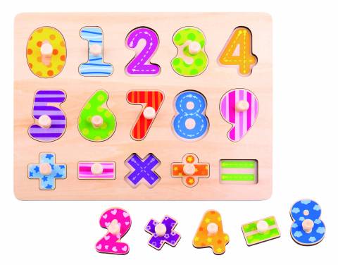 Acest puzzle educativ cu cifre din lemn este conceput pentru a ajuta copiii sa invete numerele si operatiile matematice de baza intr-un mod distractiv si interactiv. Fiecare cifra este prevazuta cu buton din lemn, facilitand prinderea si potrivirea corecta in locasul corespunzator.