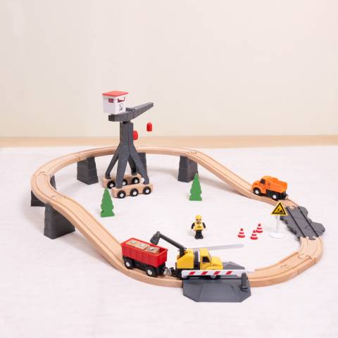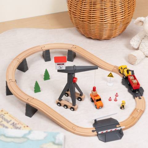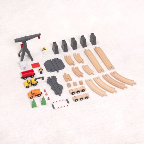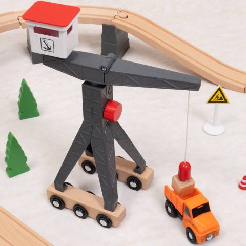 Joc Montessori Set Tren din Lemn pentru Copii, Train Set Medium cu Sine si Accesorii,