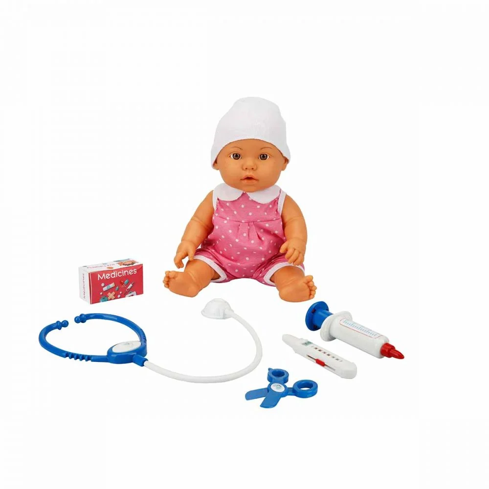 Este usor sa te joci de-a doctorul cu Bebelou! Asculta-i inima, masoara-i febra cu termometru, fa-i o injectie si ajuta-o sa se recupereze. Pachetul contine: 1 x termometru, 1 x stetoscop, 1 x seringa, 1 x foarfeca bandaje. Dimensiune articol ambalat: 29 x 13 x 38 cm Articolul functioneaza cu 2 baterii tip LR44 (incluse).