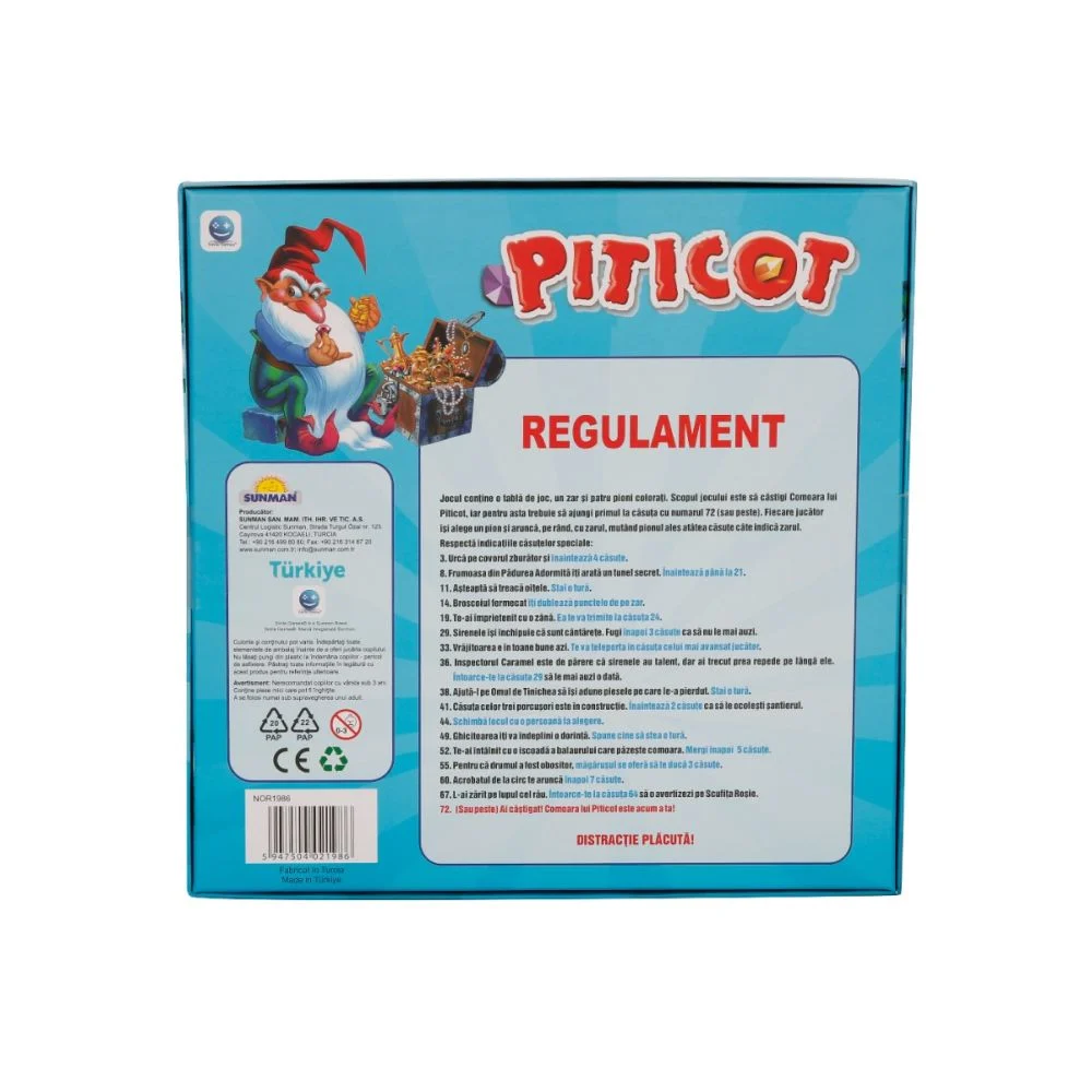 Scopul jocului este sa castigi Comoara lui Piticot, iar pentru asta trebuie sa ajungi primul la casuta cu numarul 72 (sau peste). Fiecare jucator isi alege un pion si arunca, pe rand, cu zarul, mutand pionul ales atatea casute cate indica zarul. Trebuie sa depasestei obstacolele si sa treci prin toate peripetiile pe care jocul le pune la dispozitie