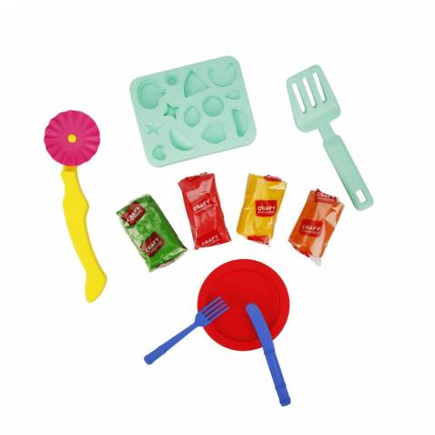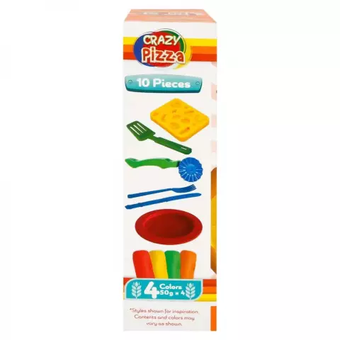 Decupeaza si modeleaza plastilina in diferite forme pentru a realiza o pizza delicioasa pentru tine si prietenii tai. Setul este format din 10 piese: 4 culori diferite de plastilina (50 g fiecare), 1 dispozitiv de taiat pizza, 1 matrita cu diferite forme, farfurie, 2 tacamuri, 1 spatula.