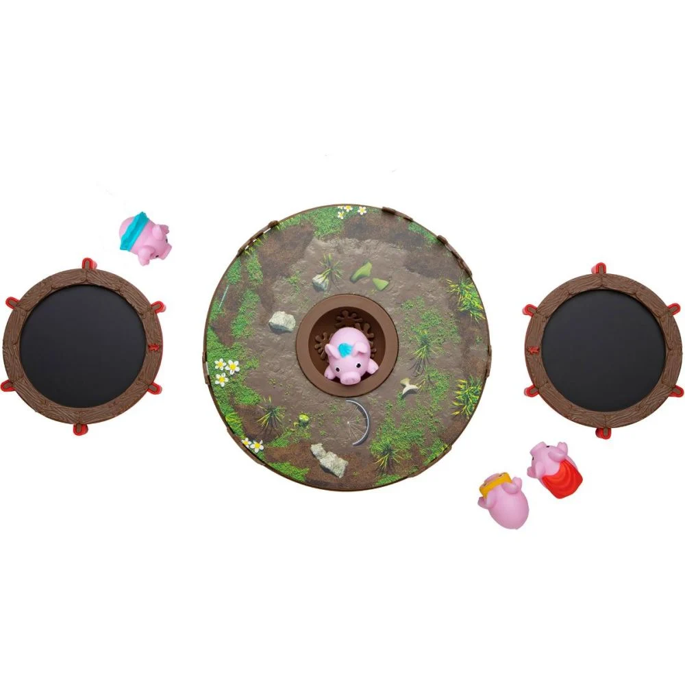 Foloseste trambulina pentru a arunca porcisorii in tarc si incearca sa aterizezi direct in balta cu noroi.Fiecare porcusor iti aduce placinte cu noroi.Cine strange cele mai multe placinte castiga.