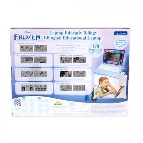 Transformati procesul de invatare al copilului cu noul laptop educativ Lexibook Frozen, conceput pentru a oferi o experienta interactiva captivanta prin cele 170 de activitati incluse, distribuite egal, cu 85 disponibile in fiecare limba.