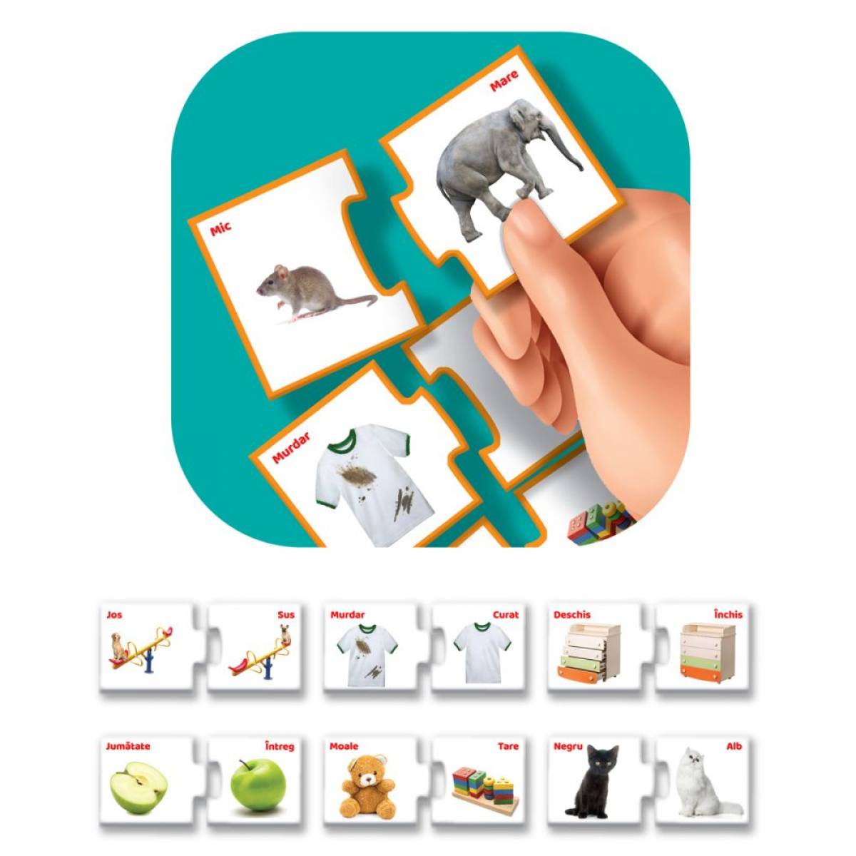 Afla mai multe despre termenii opusi cu un puzzle-ul "Sa invatam opozitiile". Puzzle-ul a fost pregatit cu scopul de a contribui la dezvoltarea mentala si lingvistica a copiilor, folosind imagini din viata de zi cu zi, cu care acestia pot face asocieri. Numar piese: 60.