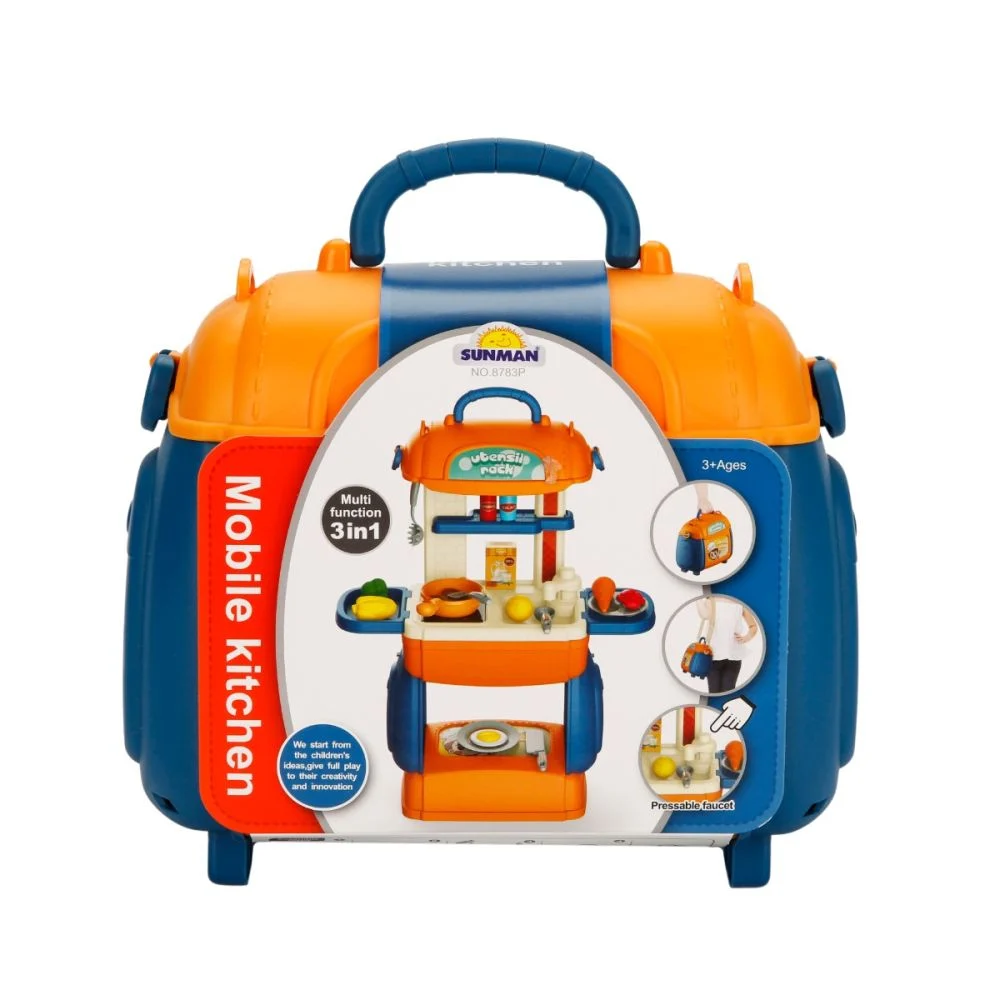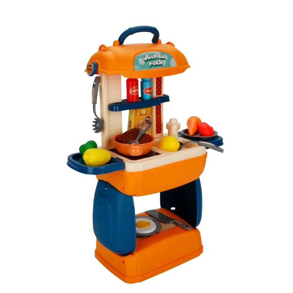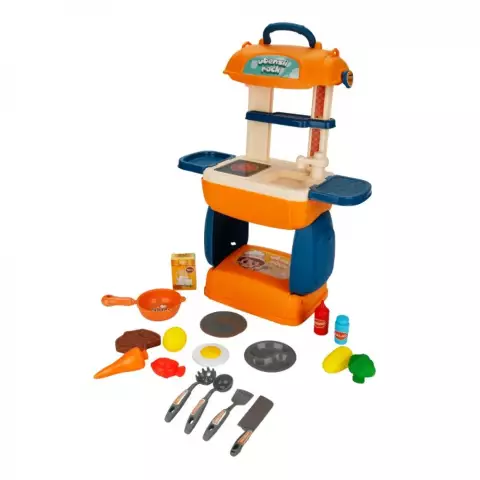 Este timpul ca mici bucatari sa se apuce de gatit cu setul de bucatarie in gentuta si sa pregateasca cele mai delicioase retete pentru prietenii lor! Gentuta contine toate accesoriile necesare pentru o bucatarie de jucarie, si poate fi usor transportata, astfel incat copiii sa se poata juca oriunde. Setul ii ajuta pe copii sa isi dezvolte coordonarea mana-ochi, abilitatile de imitatie, abilitatile manuale, socializarea si dezvoltarea imaginatiei. Setul contine: - 1x gentuta; - 1x tigaie; - 2x farfurii; - 4x ustensile de bucatarie; - diverse alimente.