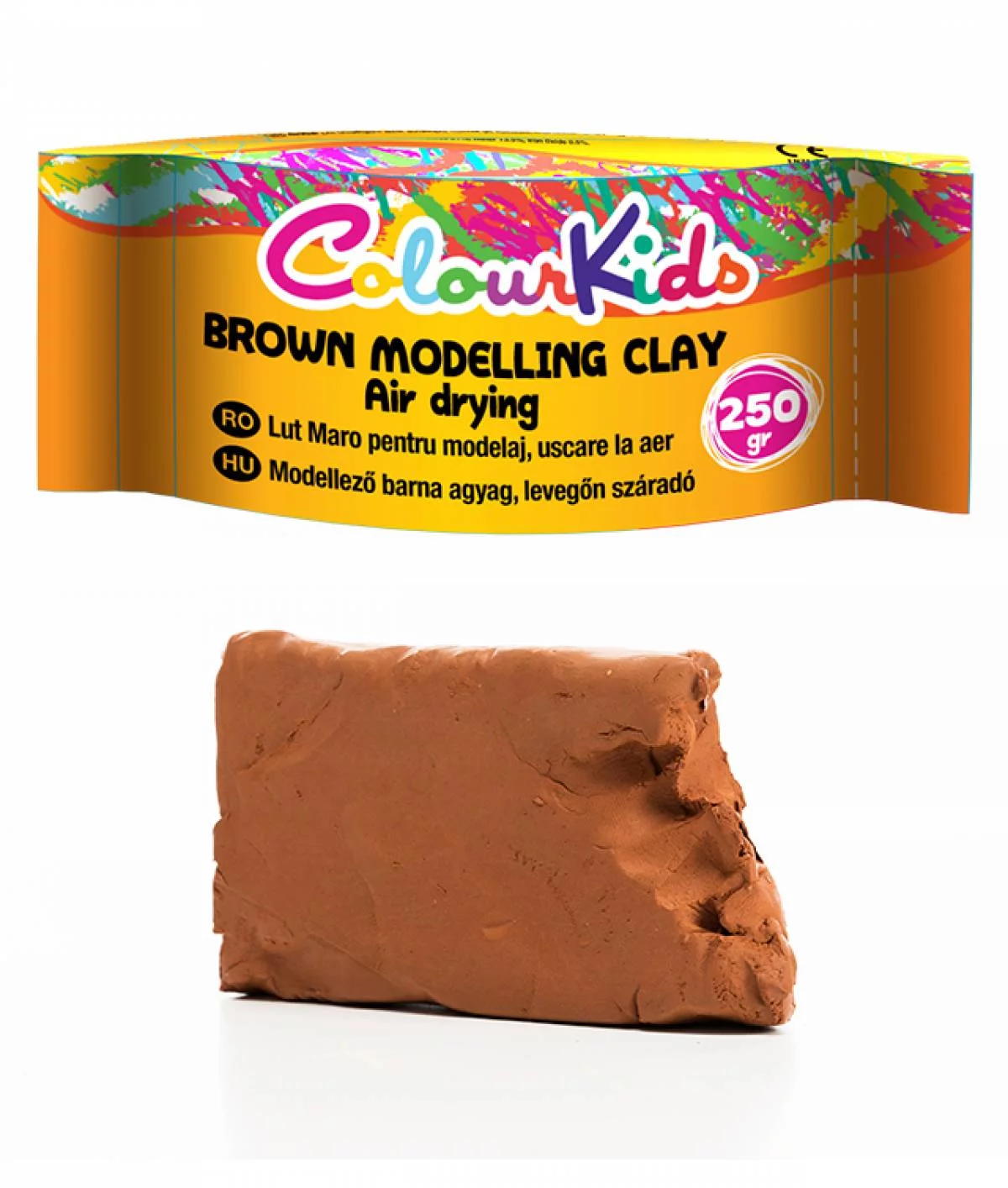 Lut de modelat maro CK, 250 grame, perfect pentru artizanat și proiecte creative. Material moale, ușor de modelat, ideal pentru copii și adulți. Culoare maro uniformă, textura fină, se usucă la aer. Excelent pentru sculpturi mici, decorațiuni handmade și activități educative DIY.