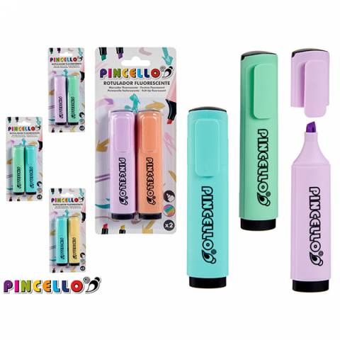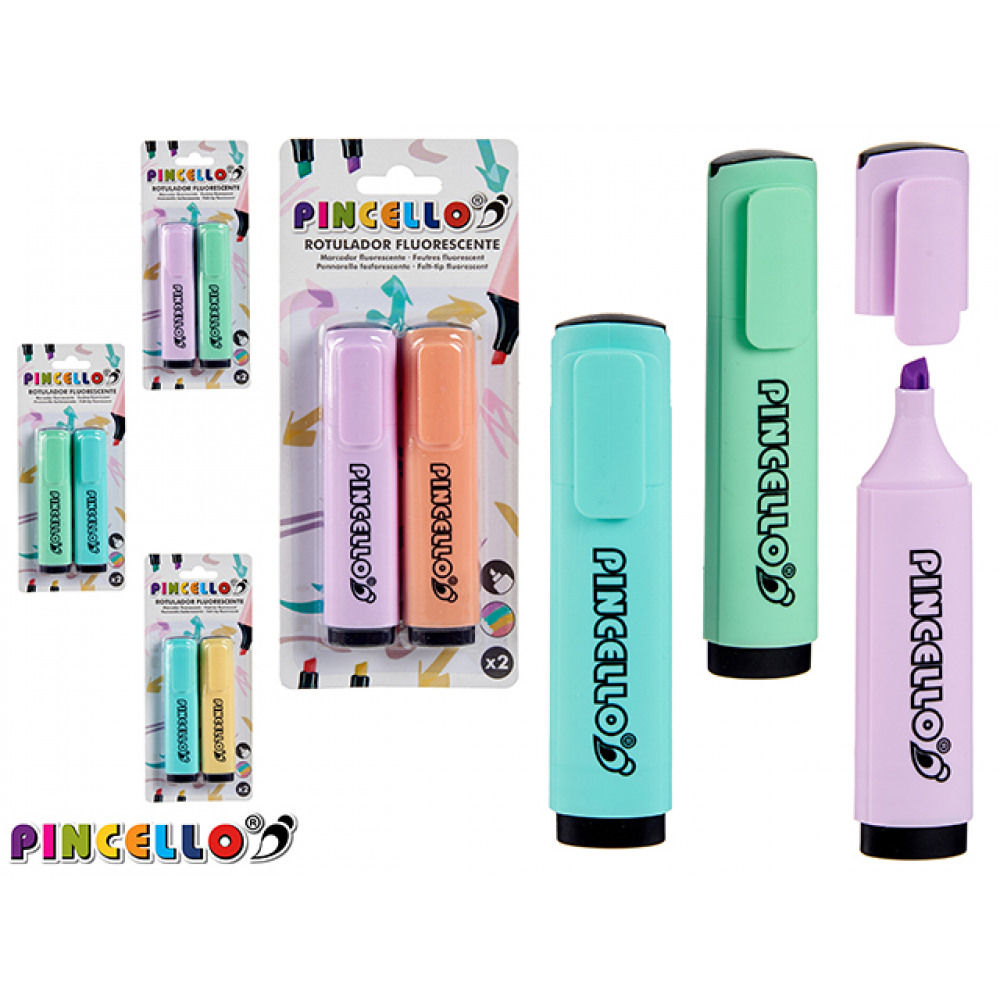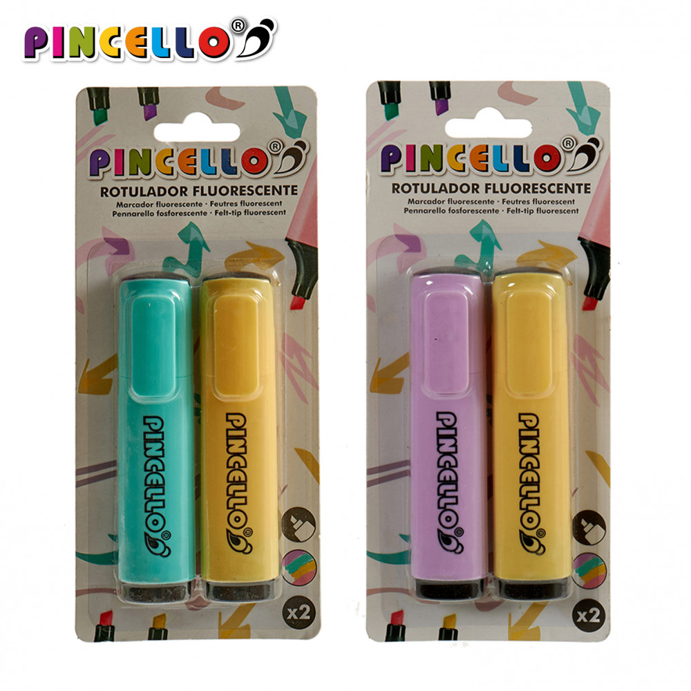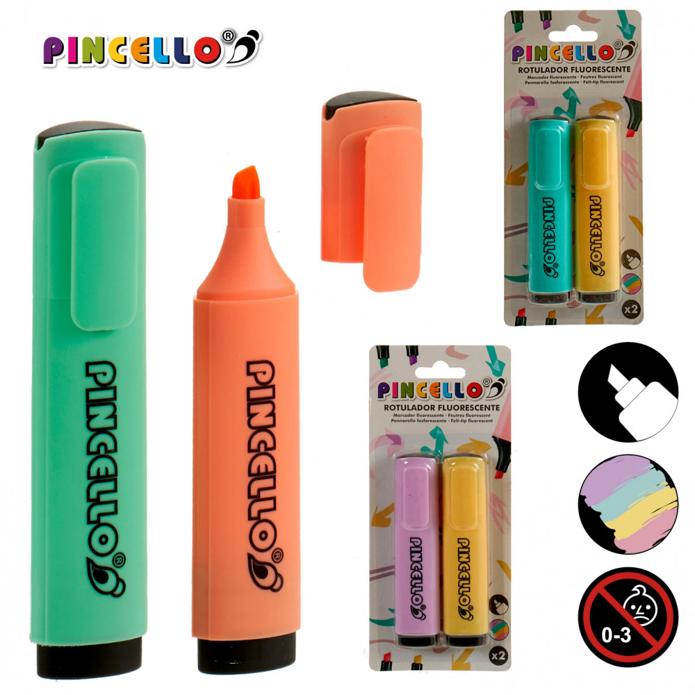 Set 2 markere fluorescente, culori 2 ori asortate pasta Culori: Verde + lila + galben + portocaliu + portocaliu Materiale: Plastic