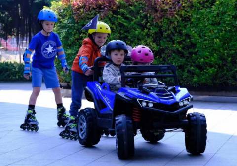 Aceasta masinuta electrica pentru copii tip UTV Off-Road 12V imbina designul sportiv cu functii moderne si siguranta avansata, oferind copiilor o experienta de condus realista si captivanta. Caroseria robusta, rotile mari off-road si suspensia pe toate cele patru roti asigura stabilitate si confort pe diferite tipuri de teren. Echipata cu baterie 12V 7Ah si patru motoare electrice 380 (tractiune 4x4), masinuta ofera performanta constanta si control optim. Sistemul de pornire lenta, accelerare si decelerare progresiva si franare automata sporesc siguranta in timpul utilizarii. Atat copilul, cat si parintele pot controla vehiculul, acesta din urma prin telecomanda Bluetooth 2.4G multifunctionala. Experienta de joaca este completata de faruri LED, lumini decorative intermitente pe caroserie, muzica dinamica, povesti in limba engleza si functii de educatie timpurie. Conectivitatea USB permite redarea melodiilor preferate, iar aplicatia mobila ofera control suplimentar. Masinuta dispune de doua usi functionale si functie de balans (rocking) pentru un plus de distractie. 🔹 Functii si caracteristici (pe puncte) Baterie: 12V / 7Ah, portabila, reincarcabila Motoare: 4 x motor electric 380 (tractiune 4x4) Suspensie: amortizoare pe toate cele 4 roti Pornire cu un singur buton (One-Button Start) Pornire lenta si oprire progresiva (Slow Start & Stop) Accelerare si decelerare controlata Telecomanda parinte Bluetooth 2.4G multifunctionala Sistem de franare integrat Afisaj nivel baterie Faruri LED + faruri simulate Lumini decorative intermitente pe caroserie Muzica integrata + claxon Povesti in limba engleza Functii de educatie timpurie Port USB Functie de balans (rocking fata-spate) Doua usi functionale Aplicatie mobila (Mobile APP) Capacitatea portantă maximă a mașinii este de 30 kg. Dimensiune mașină: 127*79*87cm. Greutate mașină: 26.2 kg. Citiți cu atenție manualul de utilizare și întreținere.