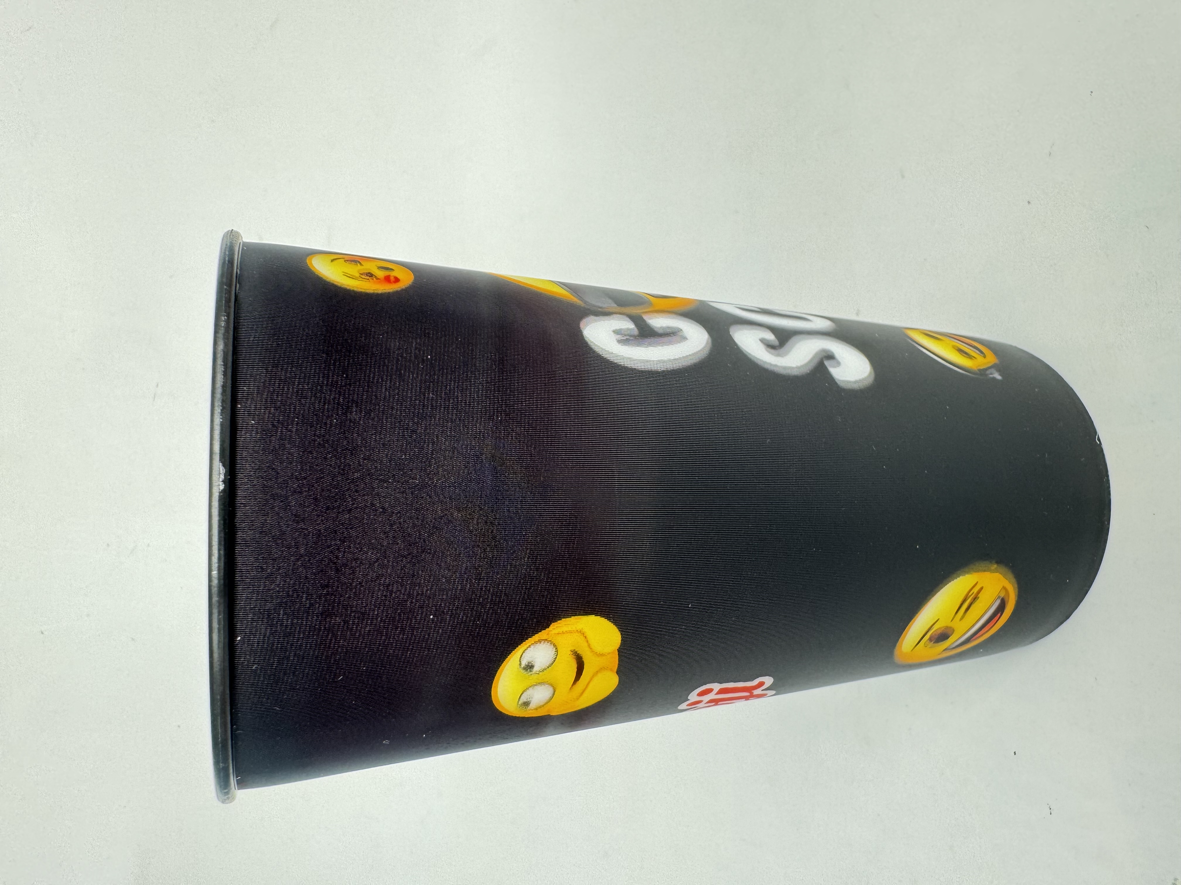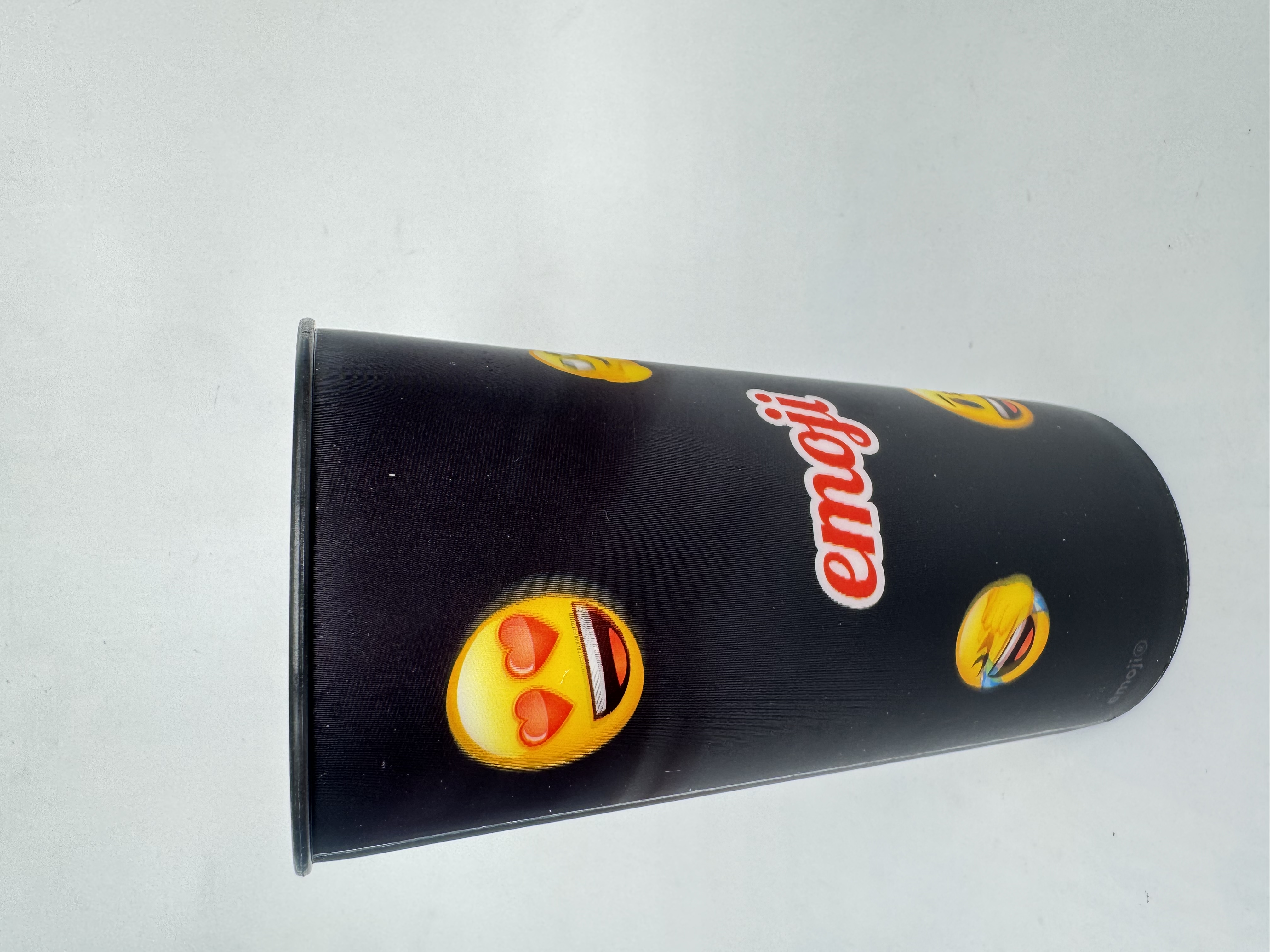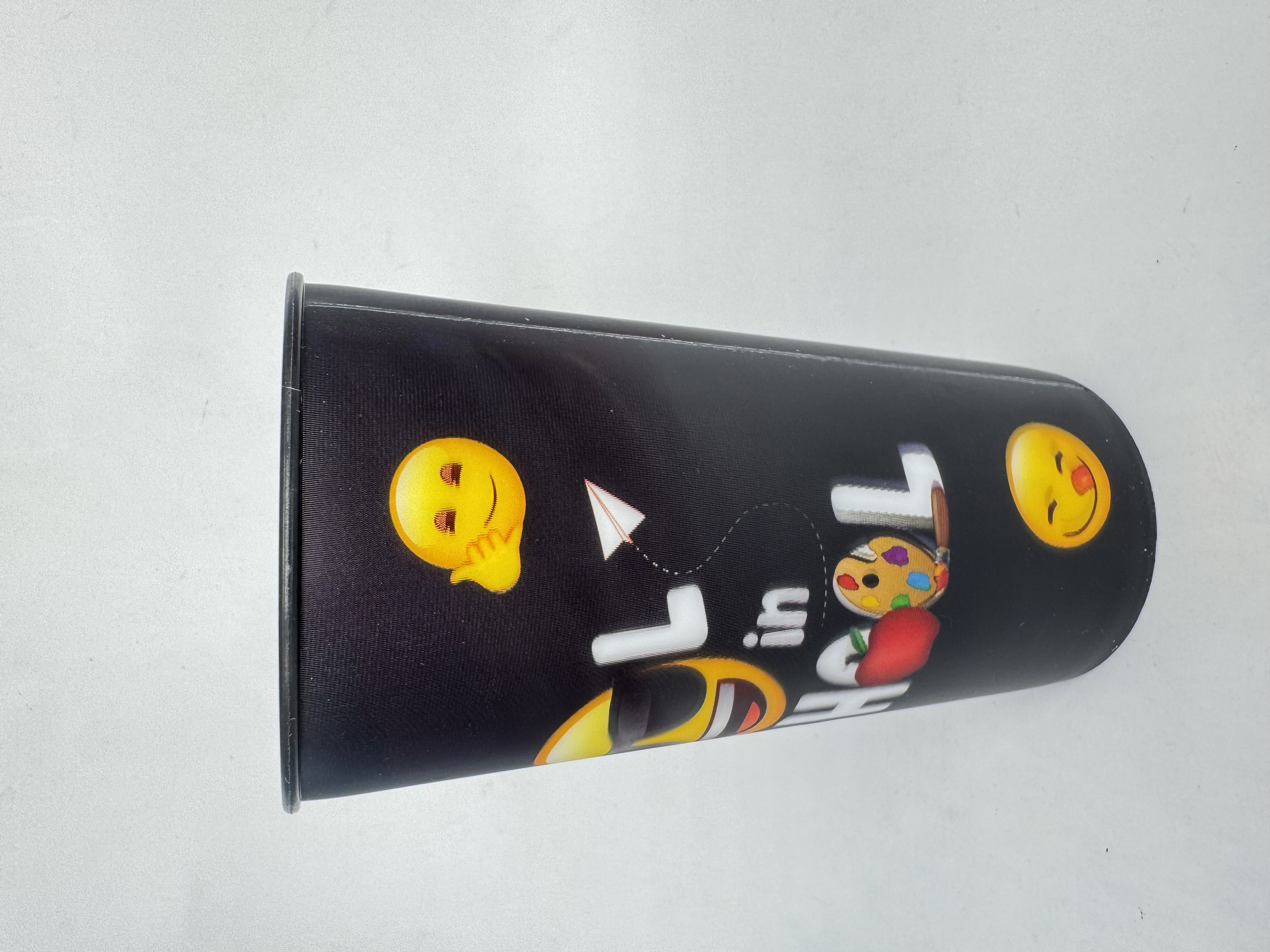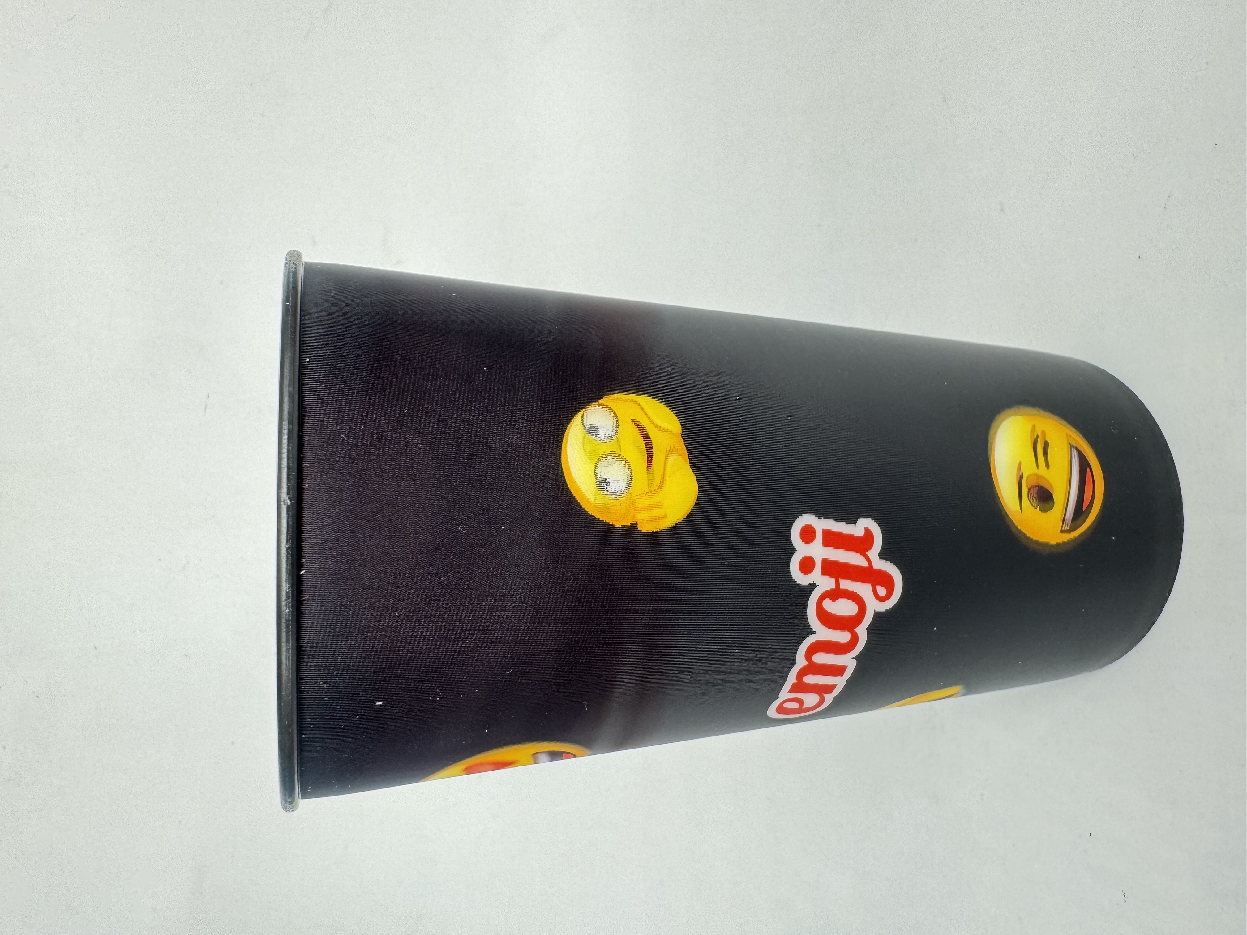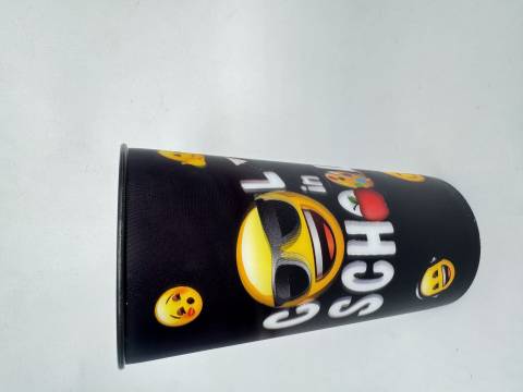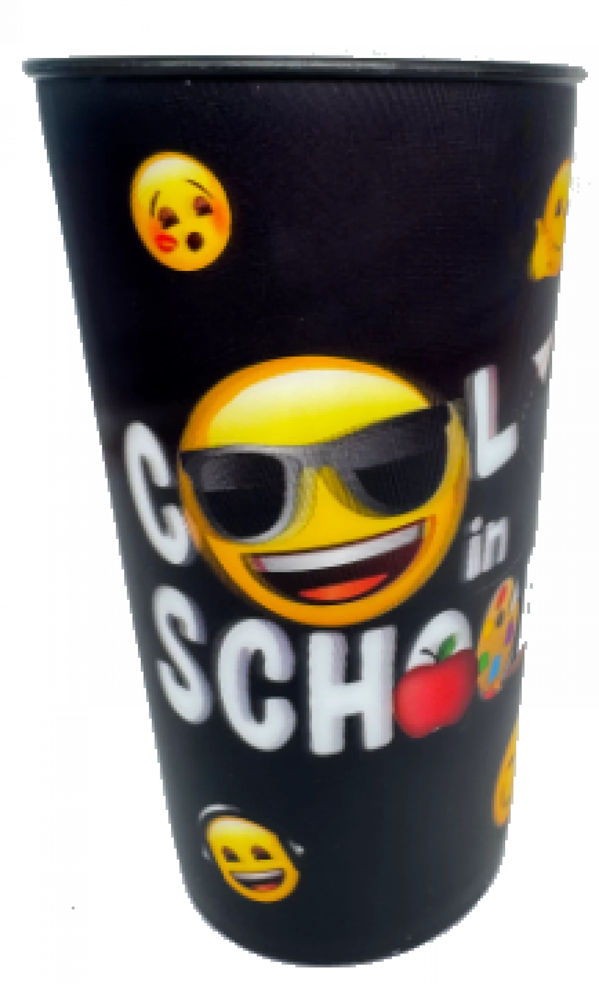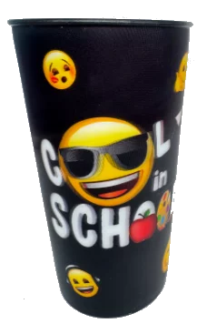Pahar termos negru Emoji de 460ml, perfect pentru băuturi calde sau reci. Design modern cu emoji-uri colorate pe fundal negru, fabricat din materiale durabile. Ideal pentru școală, birou sau călătorii, menține temperatura lichidelor pentru ore întregi.