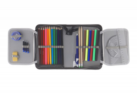 Penar Echipat, 31 Piese, 1 Compartiment, Schoolfriendly Design mixt, 1 Fermoar 2 Extensii, Mix Culori