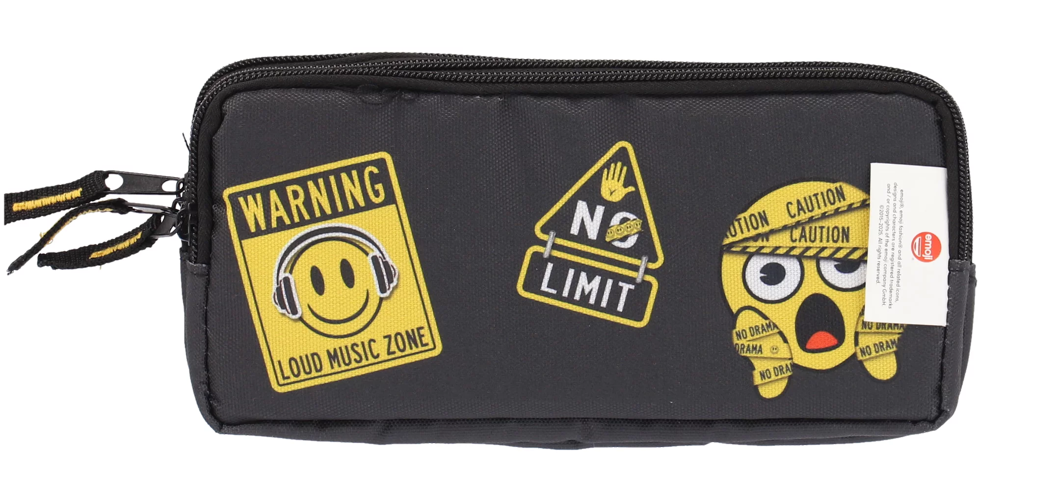 Penar dreptunghiular EMOJI CLASIC negru cu 3 fermoare și design vesel cu emoticoane. Etui spațios ideal pentru organizarea rechizitelor școlare, confecționat din material rezistent. Perfect pentru elevi și studenți care apreciază stilul modern și funcționalitatea.