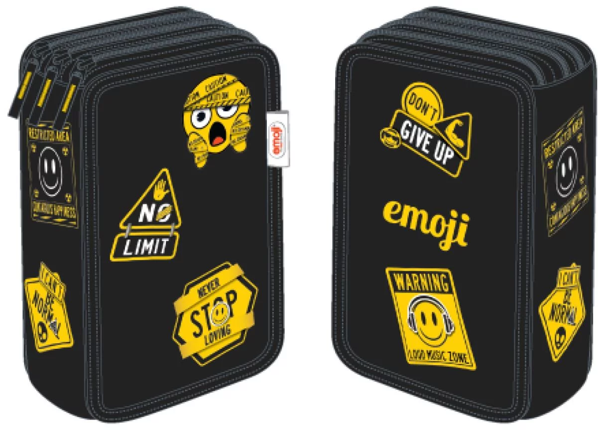 Penar neechipat EMOJI CLASIC cu 3 compartimente separate cu fermoare, culoare negru cu imprimeu emoji galben vesel. Design practic și spațios, ideal pentru organizarea eficientă a rechizitelor școlare, realizat din material rezistent pentru uzură zilnică îndelungată.
