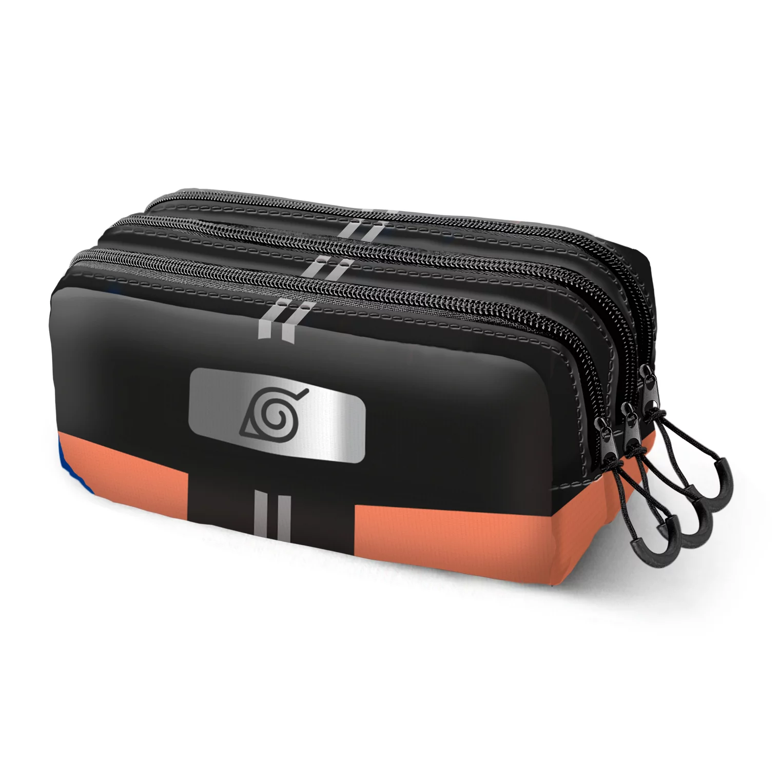 Penar mare Naruto cu 3 compartimente și 3 fermoare, perfect pentru fanii anime. Design portocaliu și negru inspirat din universul Naruto, cu simbolul Konoha. Material rezistent, spațios, ideal pentru organizarea rechizitelor școlare. Capacitate generoasă pentru pixuri, creioane și accesorii.