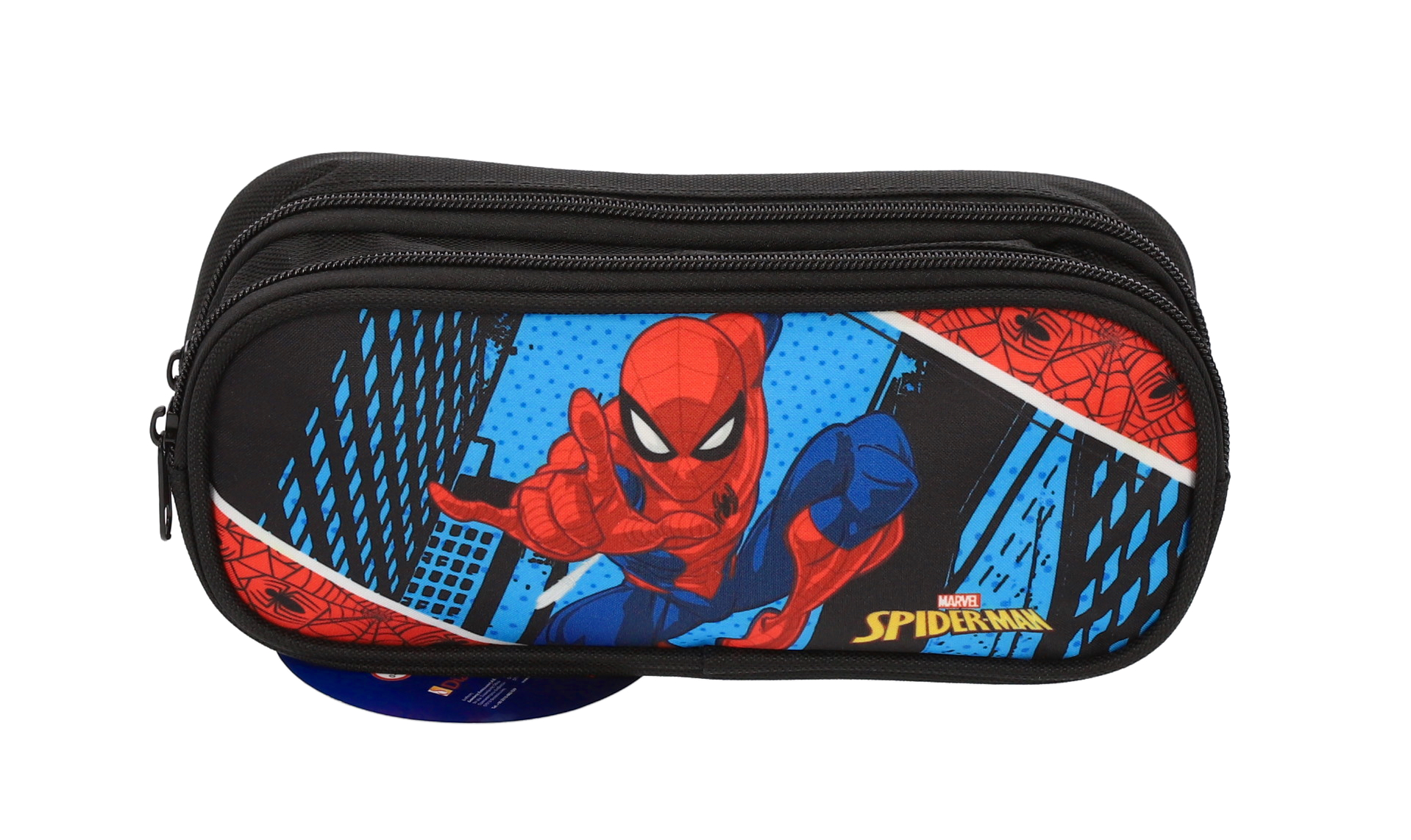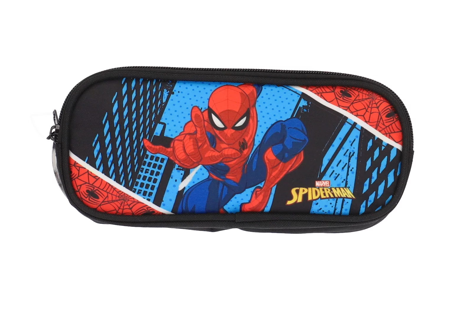 Penar cu 2 compartimente Spider-Man albastru, Material: Poliester, Dimensiuni (cm): 23x7x10. 2 compartimente cu fermoar.