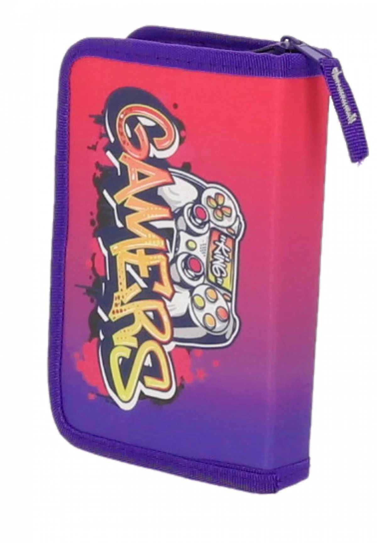 Penar școlar roz Gamers cu 2 extensii și 50 piese, perfect pentru organizarea rechizitelor elevilor. Design modern cu grafică vibrantă, compartimente multiple pentru creioane, pixuri și accesorii. Calitate superioară, rezistent și practic pentru școală.