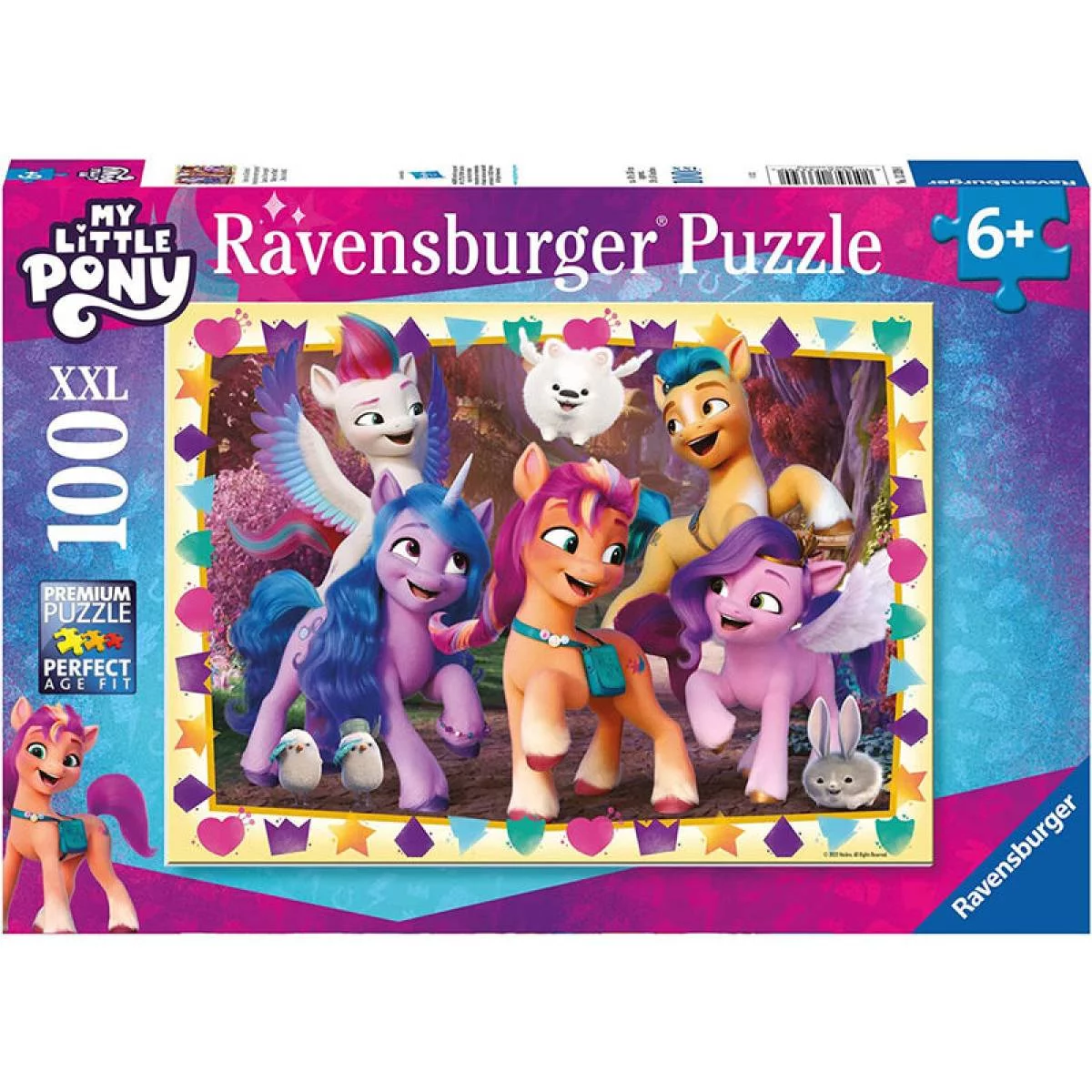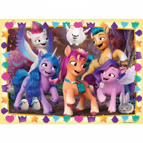 Puzzle Ravensburger My Little Pony cu 100 de piese XXL, perfect pentru copii de la 6 ani. Ilustrație colorată cu personajele îndrăgite din seria animată, piese mari premium pentru asamblare ușoară și distractivă, stimulând imaginația și abilitățile cognitive ale micuților.
