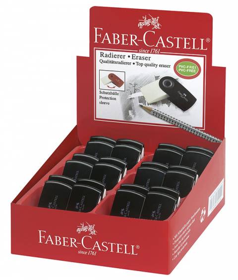 Forma ergonomica. Capacul mobil de plastic protejeaza radiera impotriva murdariei. Pentru creioane grafit. PVC-free. Culoarea capacului: rosu, albastru, negru. Fiecare radiera este inscriptionata cu cod de bare.