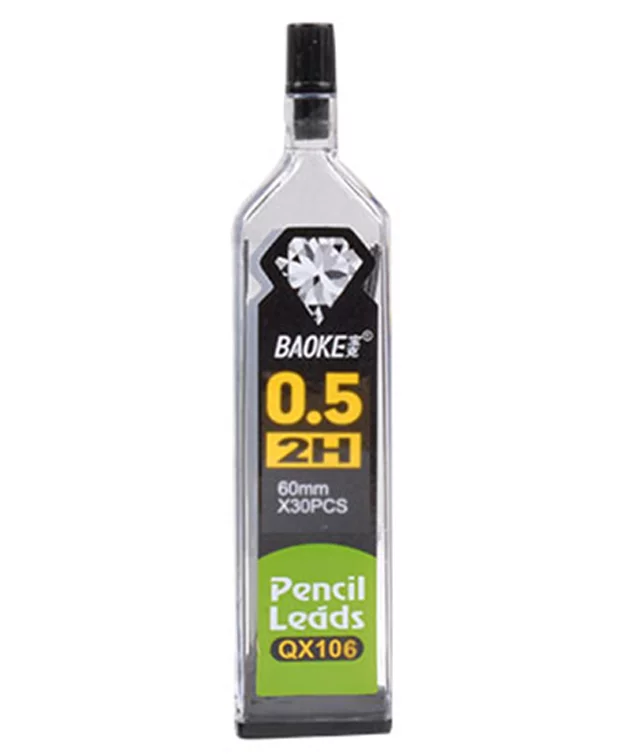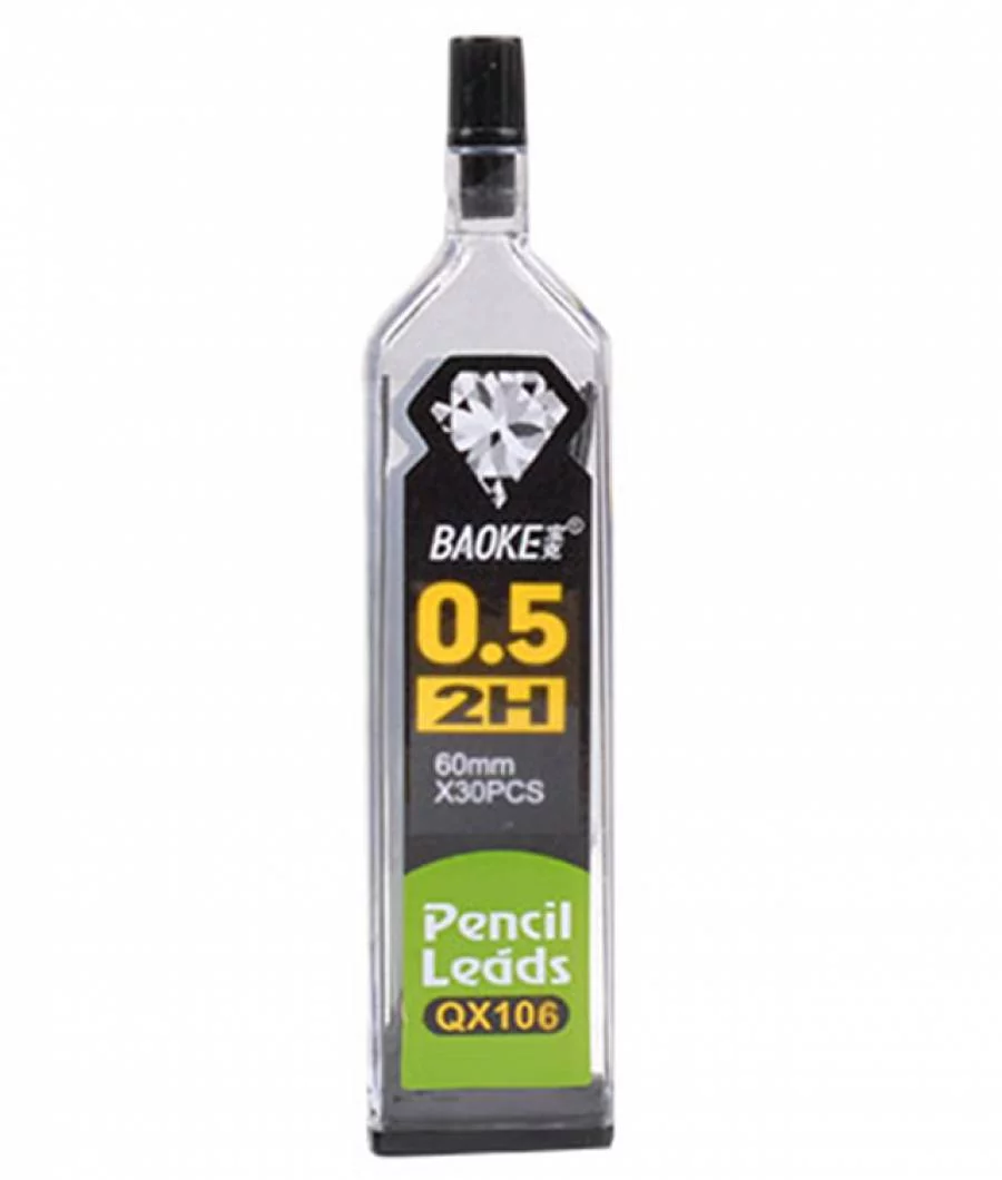 Rezerve creion mecanic BAOKE 0,5mm duritate 2H, set 30 bucăți, ideale pentru desen tehnic și scriere precisă. Mine de grafit de 60mm lungime, compatibile cu creioane mecanice standard, ambalate în tub transparent rezistent. Perfecte pentru școală, birou sau proiecte profesionale.