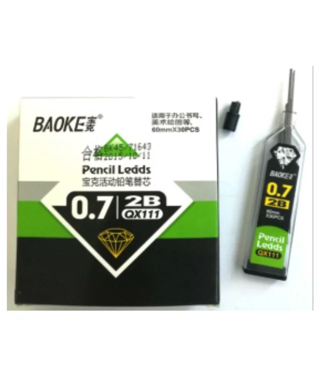 Rezerve BAOKE pentru creion mecanic, 30 bucăți, grosime 0,7 mm, duritate 2B. Mine de grafit de calitate superioară, ideale pentru scriere și desen tehnic, compatibile cu creioane mecanice standard, ambalate în cutie practică.