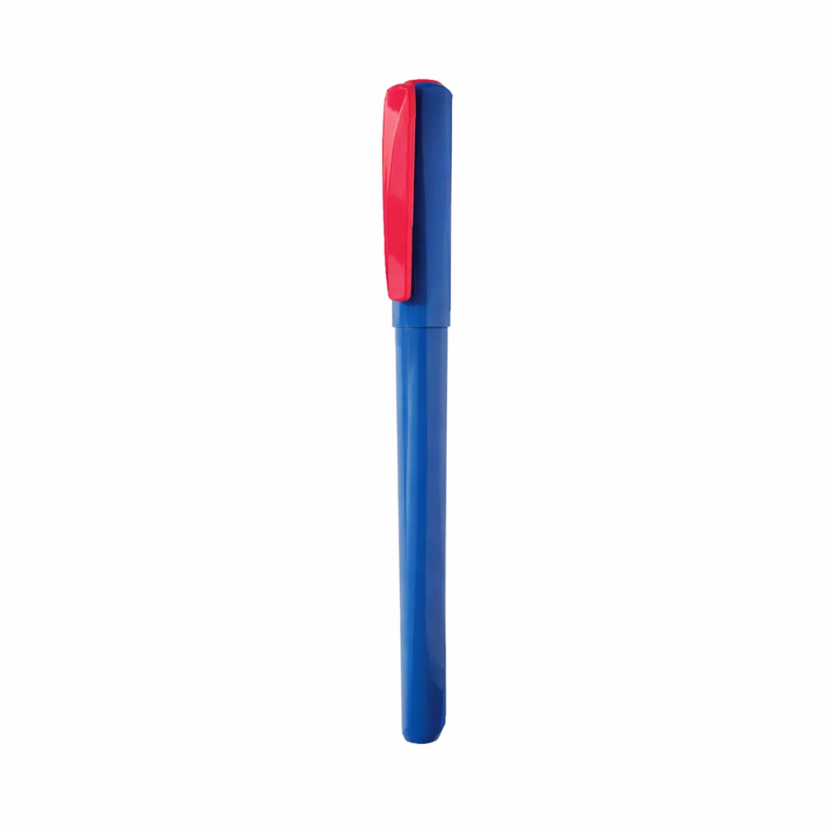 Stilou Basic cu rezervă de cerneală, corp din plastic rezistent albastru și capac roz vibrant. Design ergonomic și practic, ideal pentru scriere zilnică la școală sau birou. Include rezervă de cerneală reîncărcabilă pentru utilizare îndelungată și economică.