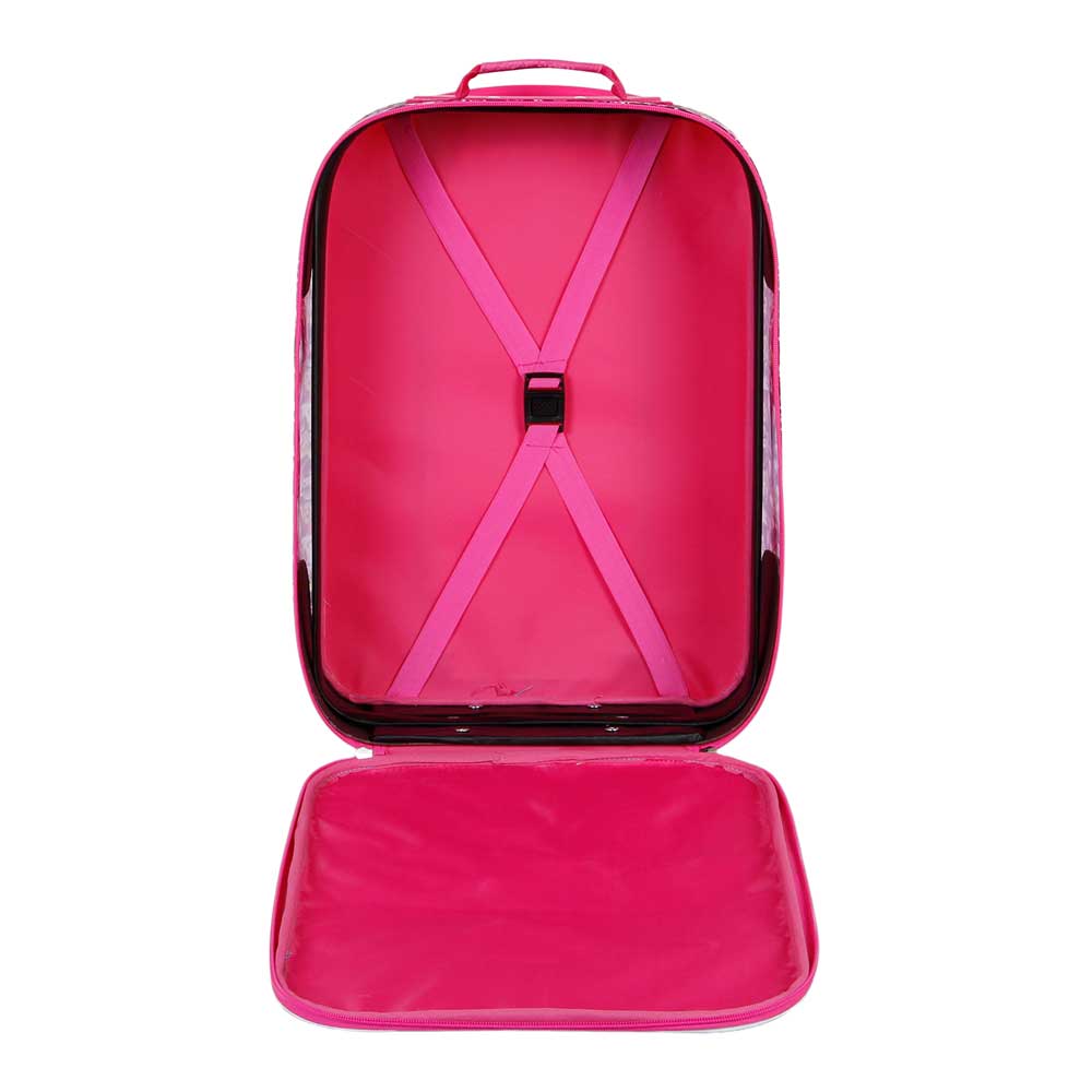 Dotat cu doua roti pentru o miscare usoara si inchis cu fermoar pentru a-ti pastra lucrurile in siguranta, acest troler este practic si functional. in interior, benzile elastice te ajuta sa-ti organizezi hainele si sa le mentii la locul lor pe parcursul calatoriei.